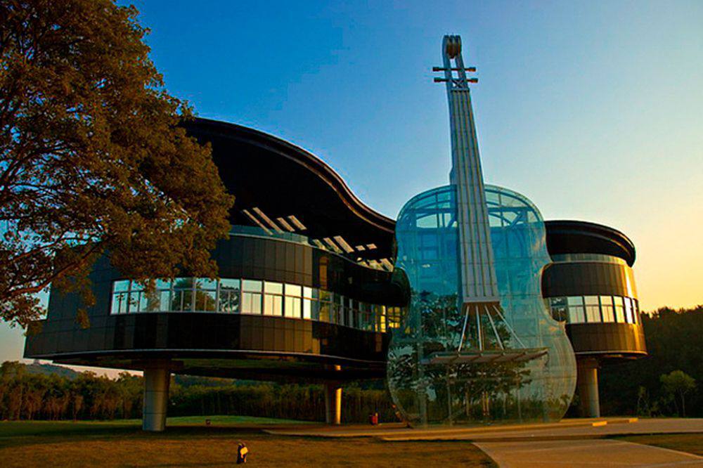 Piano House состоит из двух частей, изображающих два инструмента – прозрачная скрипка, опирающаяся на полупрозрачное фортепиано.