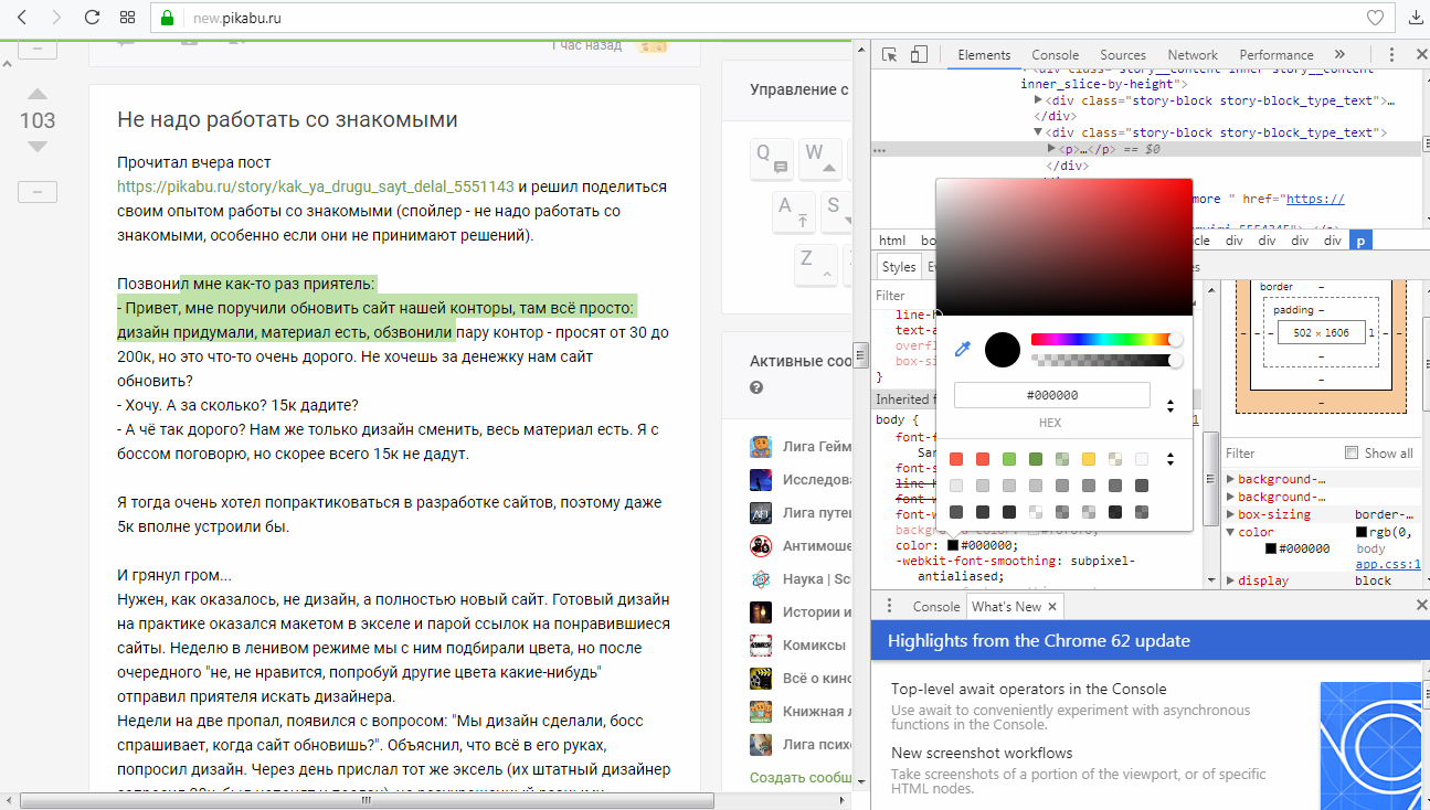 Правда, возник один вопрос. Пикабу, а что, для любимых посетителей чернил что ли жалко? Конечно, полностью черный я не прошу, все понимаю, доллар уже давно не 30 рублей, но хотя бы #2e2e2e, как на прежней версии?