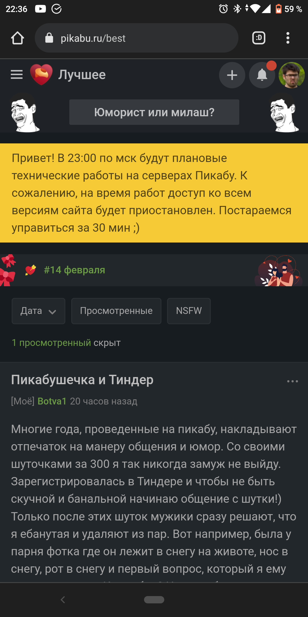 3 Mnepoh Пикабу дарит полчаса на любовь 3 года назад 14 февраля - День святого Валентина Любовь Пикабу Ещё 0