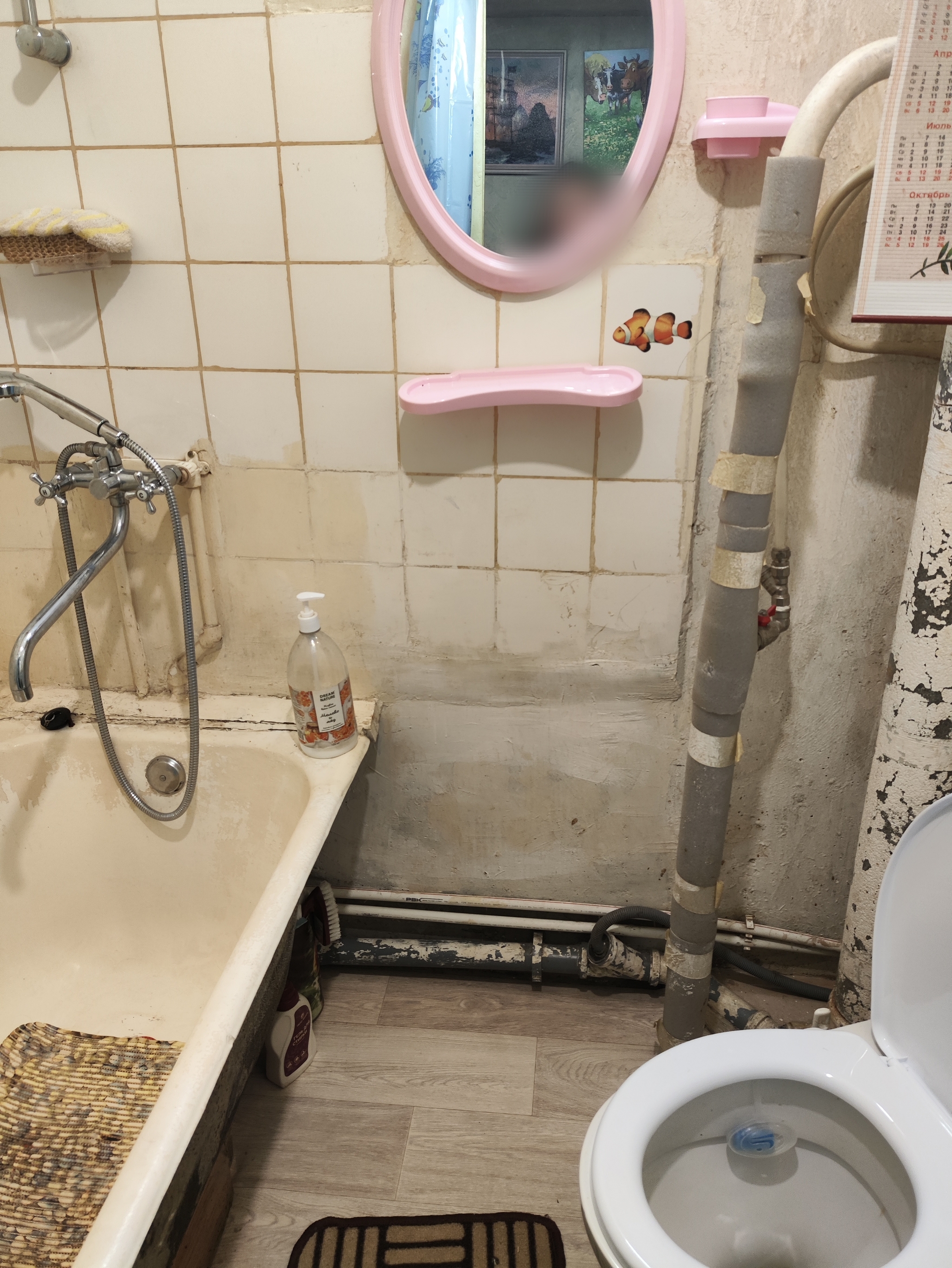 Сняла квартиру под влиянием усталости езды на работу по тонне часов из области, сейчас сижу и думаю, как сделать лучше. Сняла квартиру с такой ванной. Договорилась, что до 20к от залога могу потратить на её ремонт (установку раковины и стену)