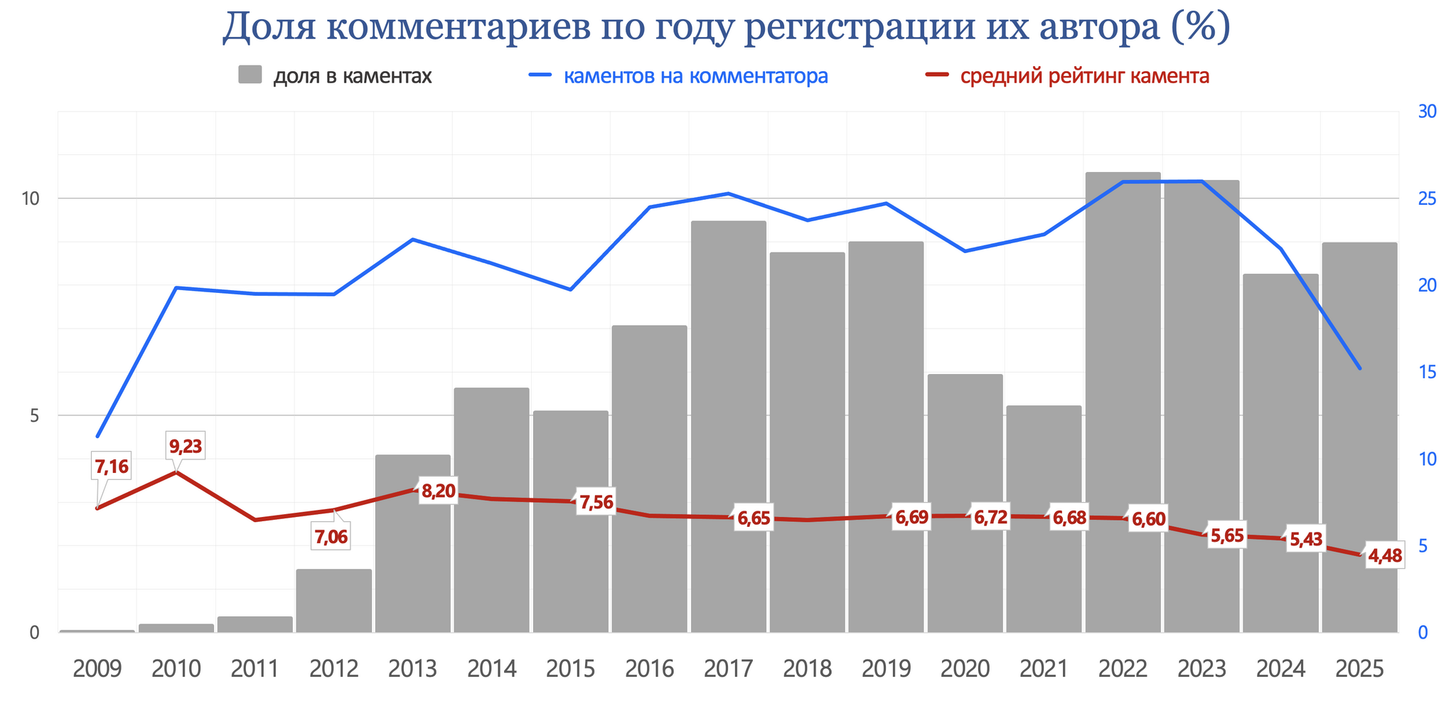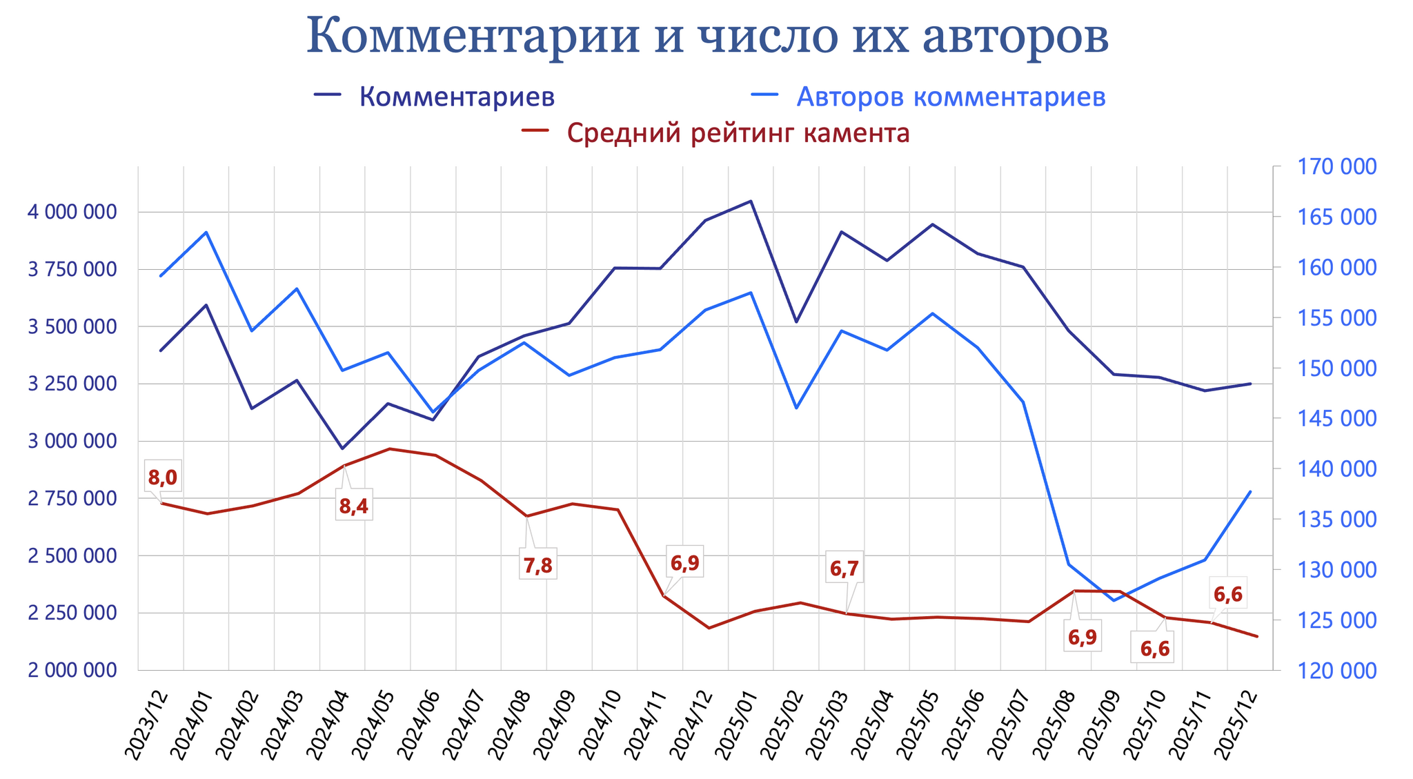 За все время авторов комментариев стало 2 070 238 (на 9 664 больше к предыдущему месяцу).