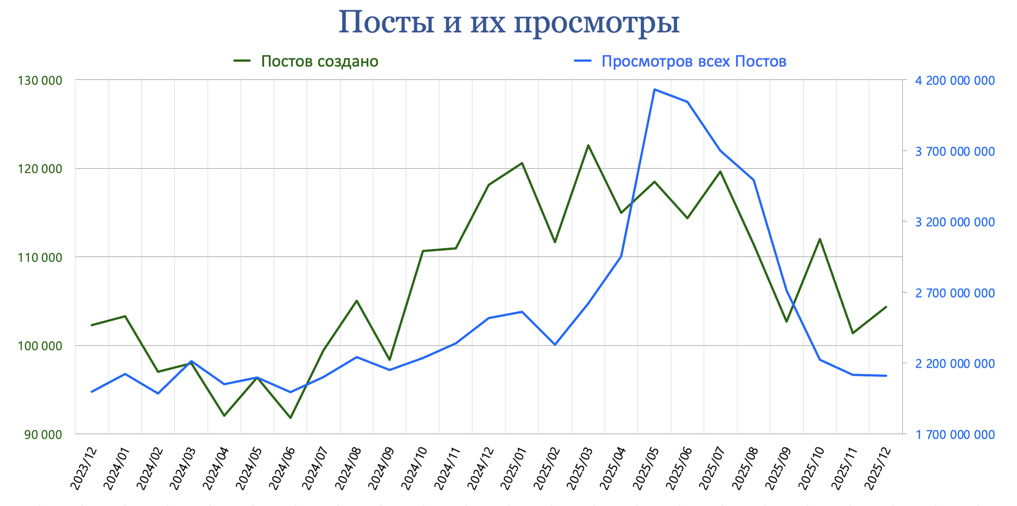 Пользователей, оформивших подписки на авторов или сообщества, на конец месяца было 1 757 978 (на 10 470 больше предыдущего). Суммарно число их подписок составило 21 064 067, из них 6 713 330 (32 %) на сообщества.