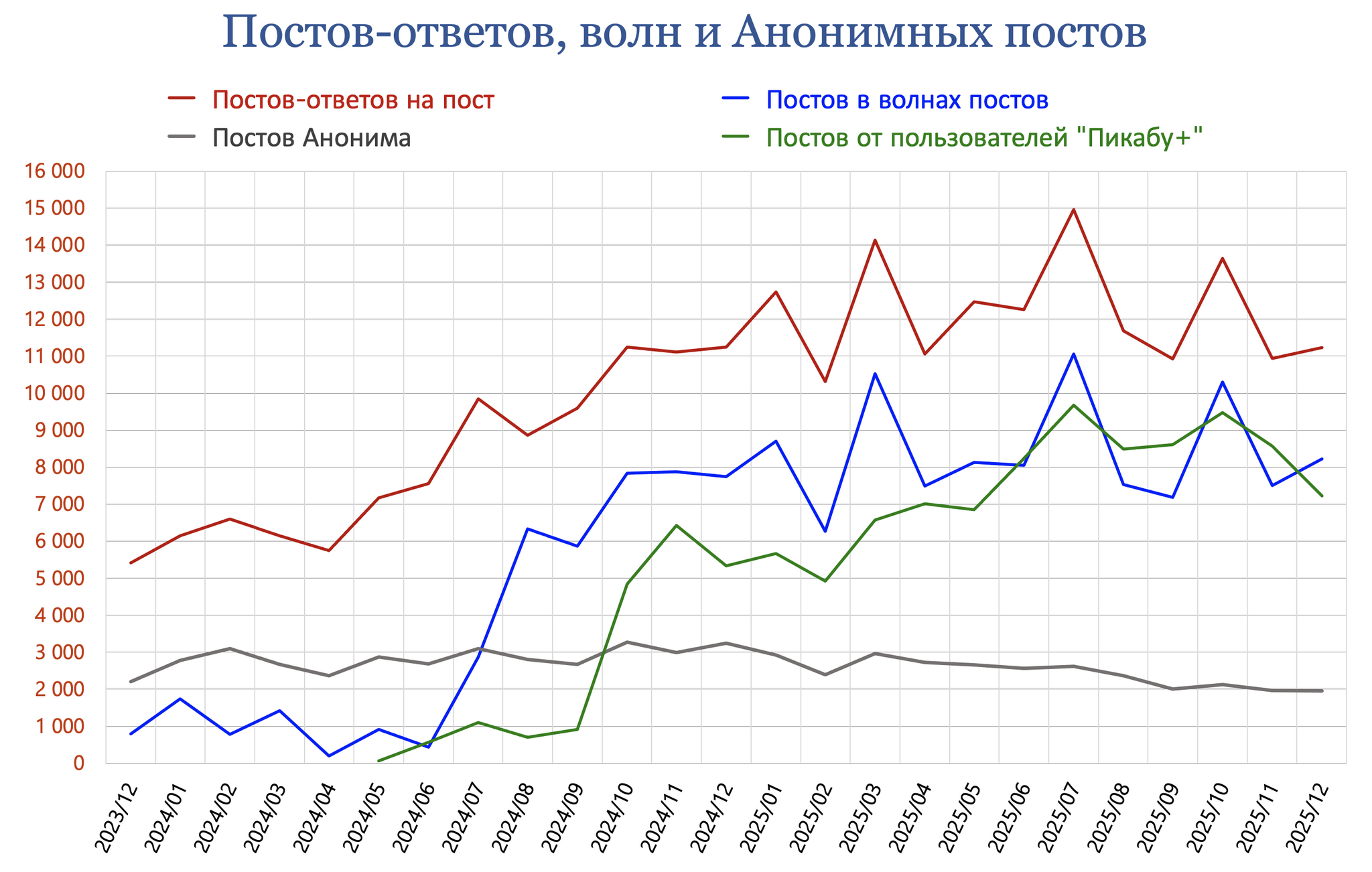 Постов-ответов на пост написано 11 238 (10,8%, на 3% больше к предыдущему месяцу).