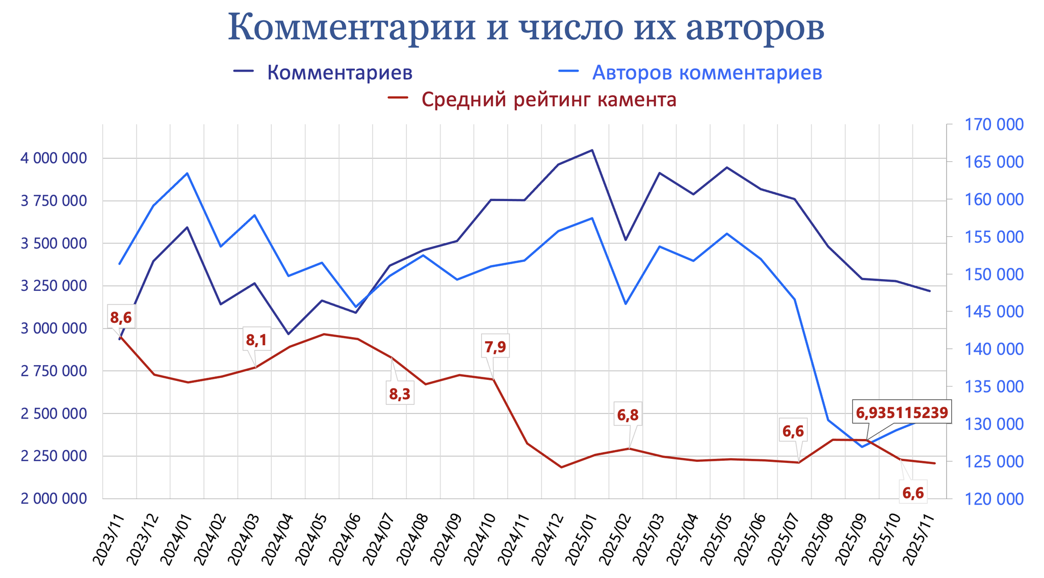 За все время авторов комментариев стало 2 060 574 (на 8 210 больше к предыдущему месяцу).