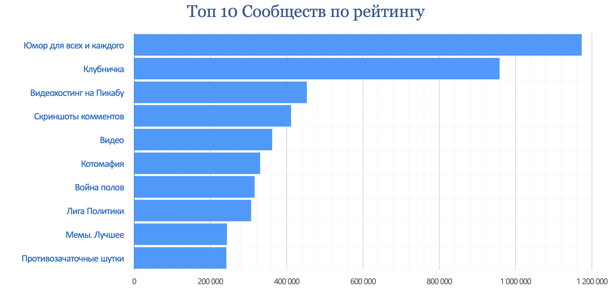 Юмор для всех и каждого - 2 227 постов за месяц, NSFW - 1 847 постов за месяц, Видеохостинг на Пикабу - 1 738 постов, SEO+ - 1 510, Аниме[18+] - 1 467, Клубничка - 1 356, Аниме - 1 128, Котомафия - 1 041, Лига Политики - 733, Комиксы - 713.