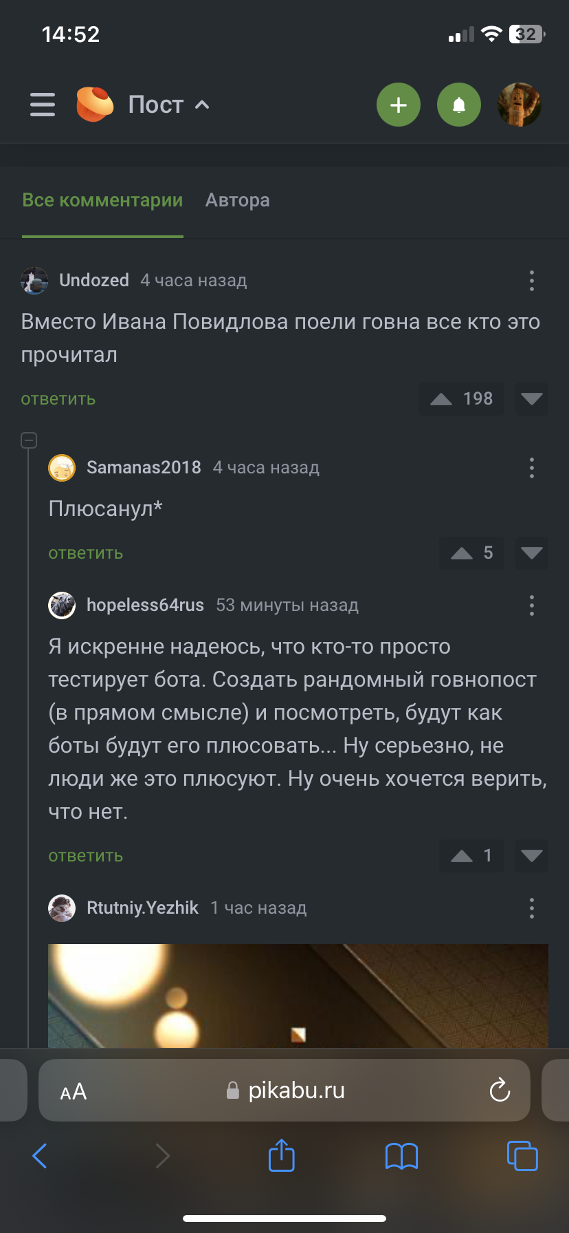 Давно заметил что при пользовании Пикабу через Safari, я не могу раскрыть ветку комментариев. Кроме того не всегда подгружаются тэги.