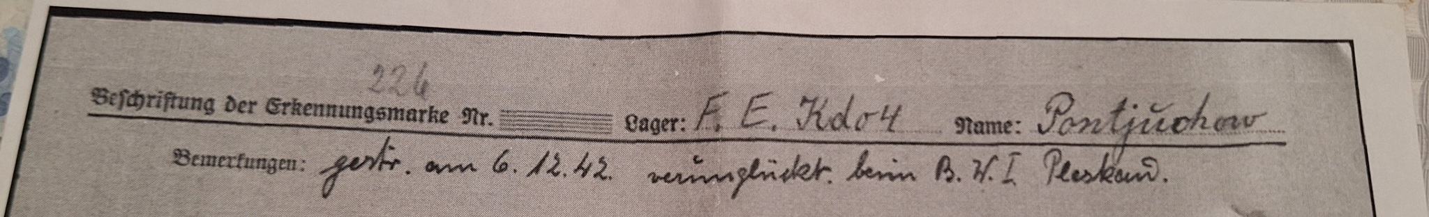 Недавно ко мне попали документы из концлагеря, в котором находился мой прадед. Частично удалось перевести текст, но то, что написано на фотографии, разобрать не удалось ни переводчикам, ни нейросетям.
