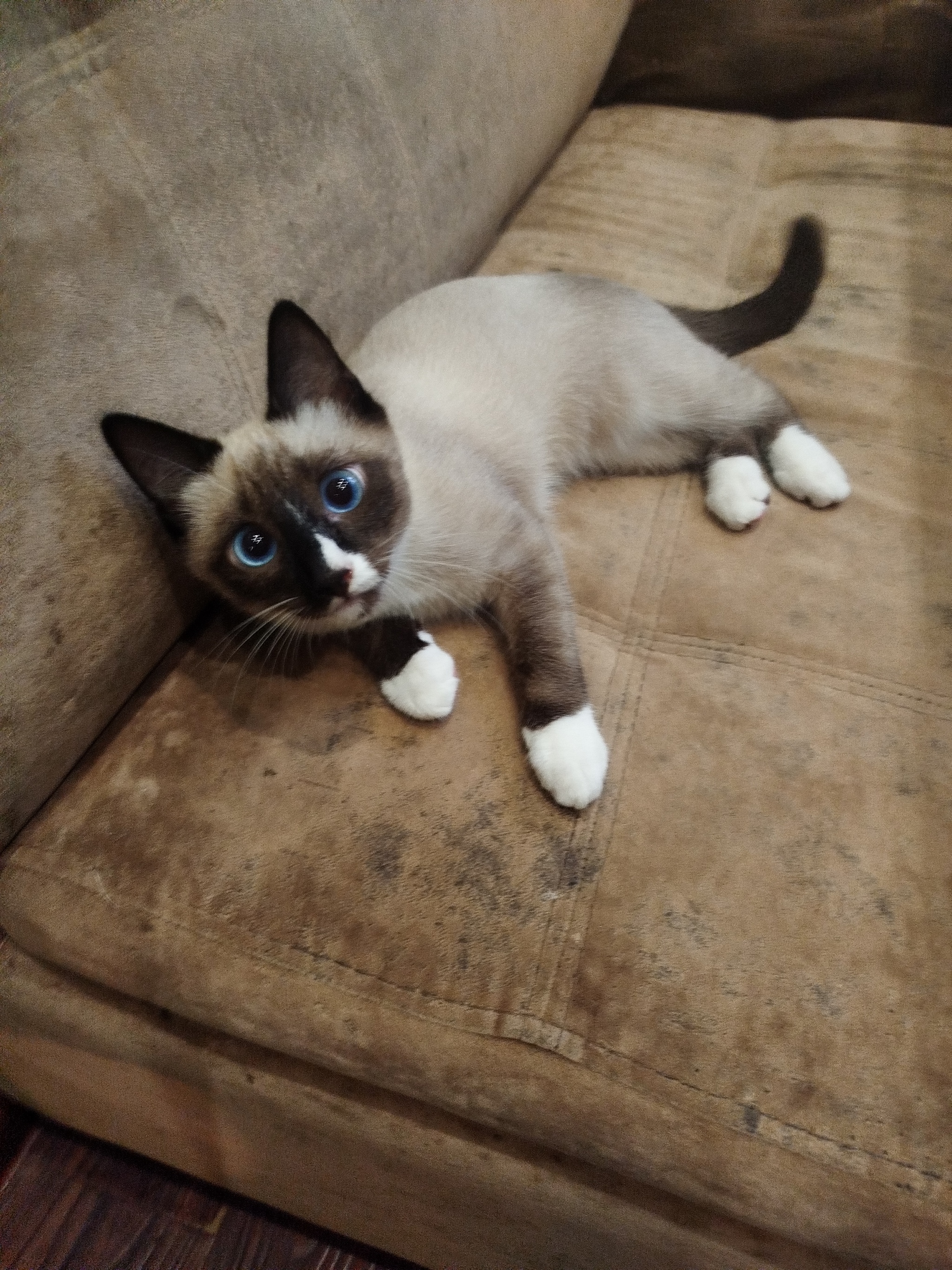 Досталось мне такое вот мохнатое чудо. Брал трехмесячным, бывшая хозяйка сказала, что это тайский кот, ну тайский и тайский. Затем в болталке моего города, в раздел питомцы скинул его фотку, а там девочка поглядев на фотку сказала, что это котик породы Сноу шу. Потом другая заявила, что это либо таец, либо сиамка. Есть спецы?) Че за зверь мне достался?)