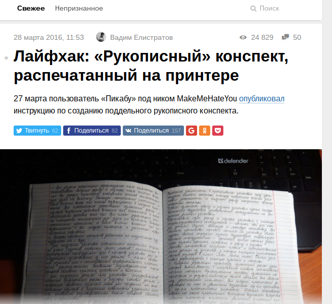alexza Пикабу везде 9 лет назад На новостном портале опубликовали инструкцию пикабушника по созданию рукописного конспекта.СтатьяИнструкция на пикабу Tjournal Скриншот