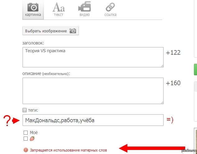 Пытаюсь добавить картинку на сайт Пикабу и вот что он мне выдаёт =)) Я так понял,Мак*ональдс уже внесён в разряд матерных слов? ))) Картинка не добавляется.