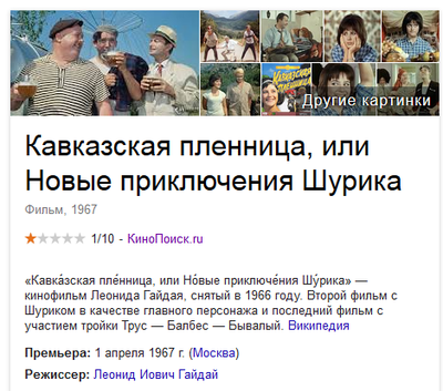 Гугл поисковая машина (программа, робот). Он ориентируется на ключевые слова. Существует даже целая система оптимизации страниц seo. И чтобы поднять в рейтинге новый ремейк авторы не стали менять название, ну там добавлять циферку 2, а тупо убрали "или Новые приключения Шурика". В итоге получилось как бы два фильма оригинал и новый с коротким названием. Для чего они это сделали? Чтобы подняться в поиске, и гугл просто выводит ту информацию, которую ищут.