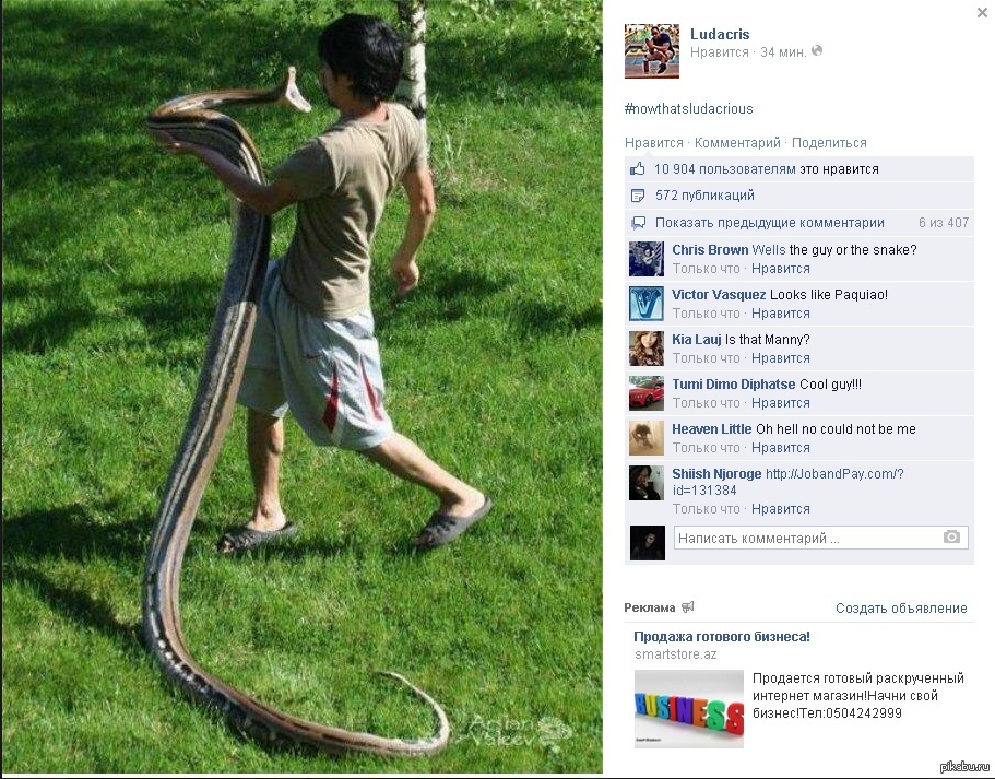 rasta23 Пикабушников уже звёзды репостят) 11 лет назад @Sauria, Ludacris впечатлён Змея Пикабушники Facebook Ludacris