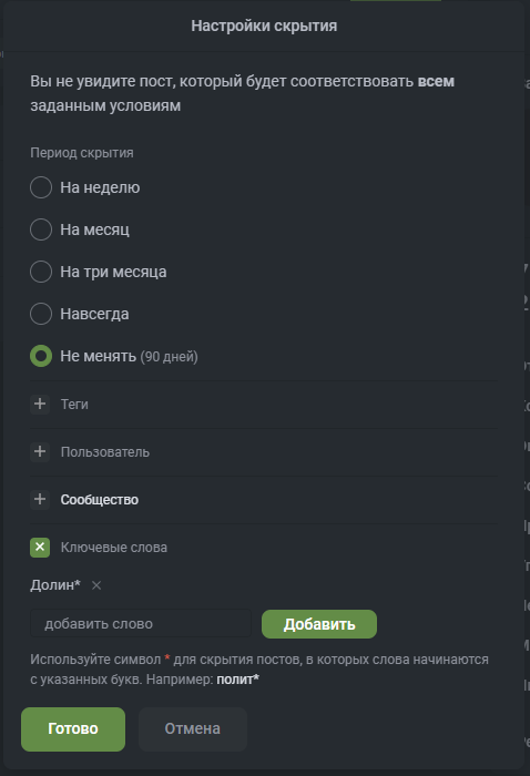 Ибо ты создал +1 дополнительный пост про Долину без тега "Лариса Долина" для тех, у кого этот тег тоже в игноре, чем явно не доставил им удовольствия, примкнув к мудакам которые их не ставят. Не для себя нужно было стараться, для других 😉