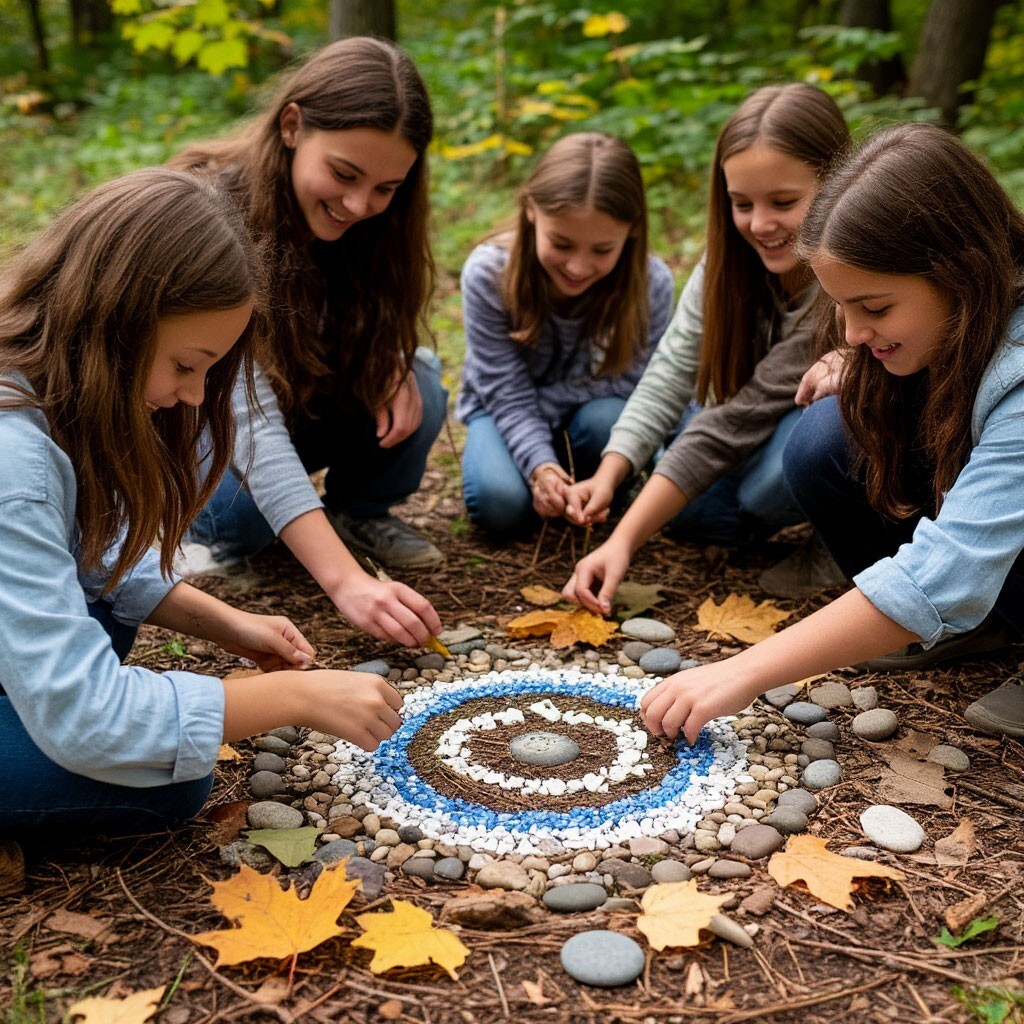 Природный Мандала/Лэнд-Арт: Соберите природные материалы: шишки, камешки, цветы, веточки, листья. Создайте совместную мозаику или узор прямо на земле. Красиво, медитативно, отличные фото. Безопасность: Не рвите редкие или ядовитые растения! Не ломайте живые ветки. Уважайте природу.