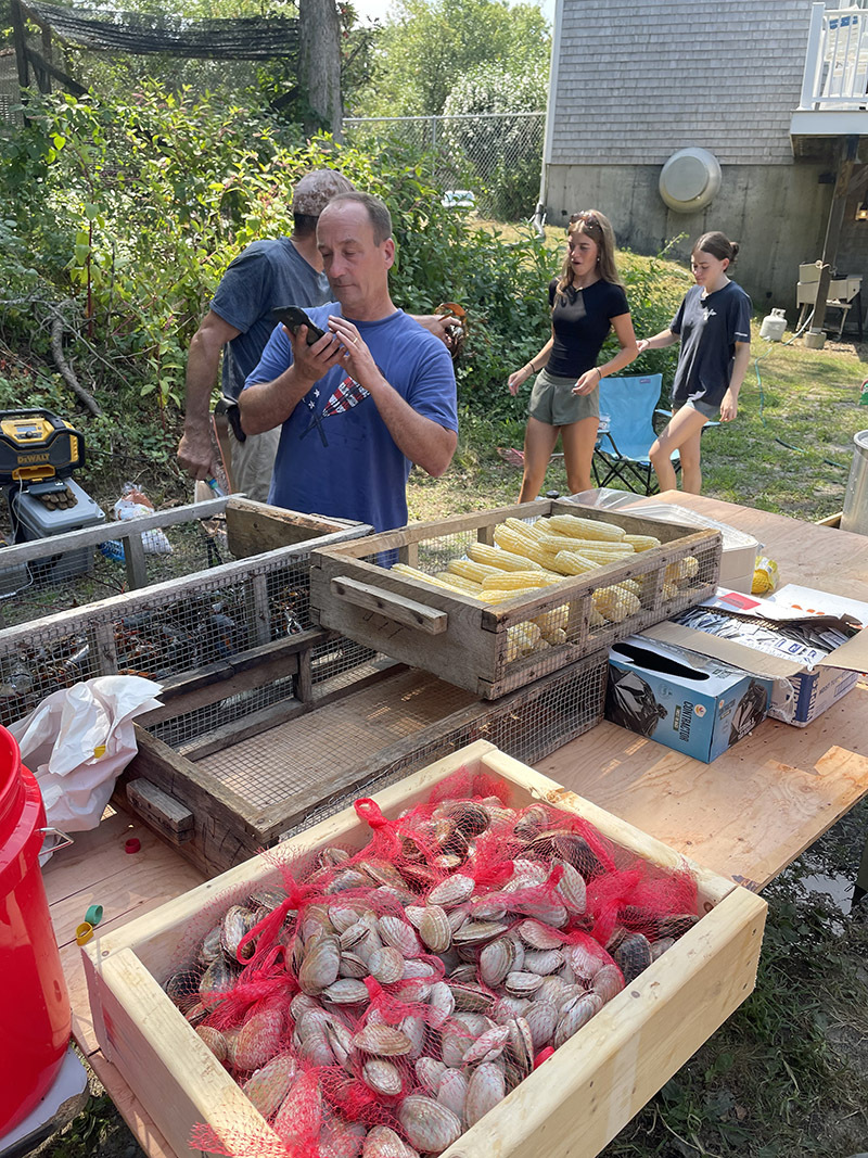 В этом же году было принято решение сделать ежегодный пикник ещё круче, и замутить то, что по-английски называется clam bake - местный способ приготовления еды на разогретых в костре камнях, когда снедь тушится под морскими водорослями.