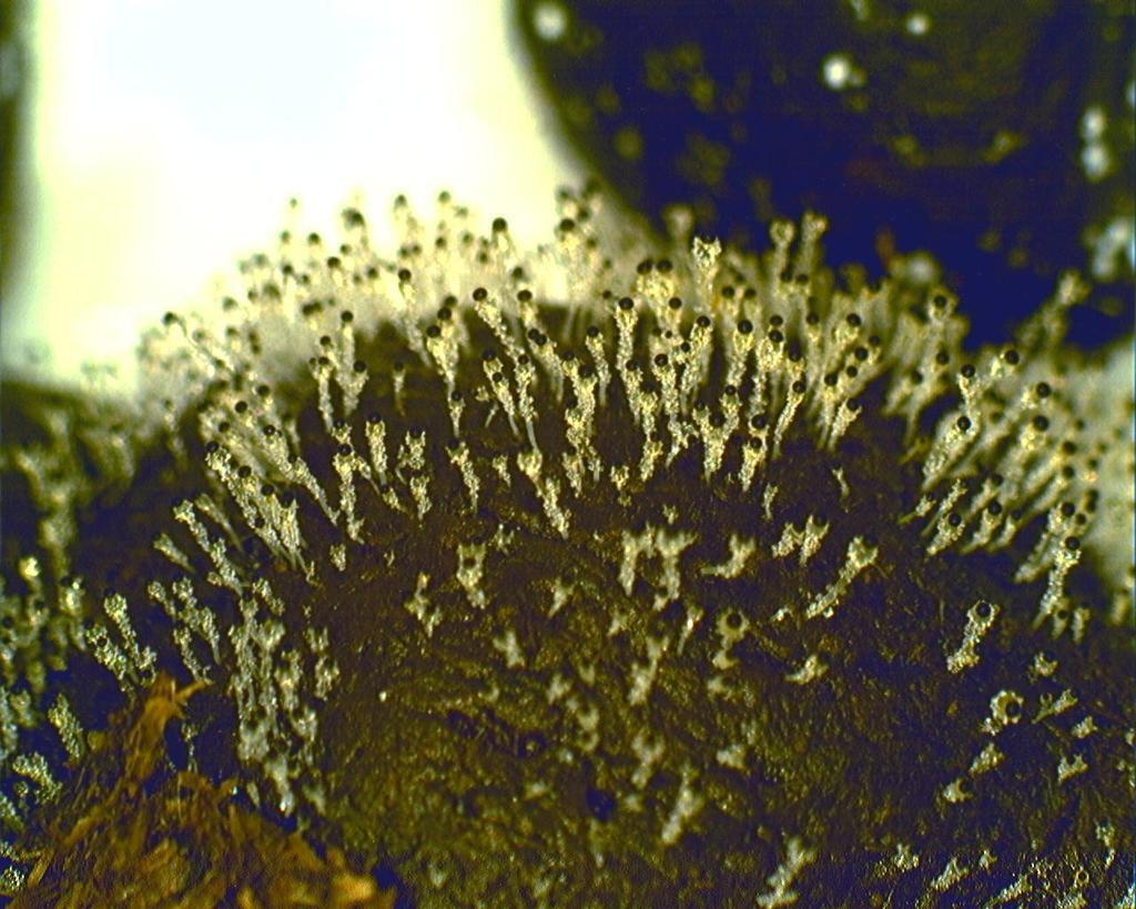 Очень красивая плесень растёт на говне травоядных. Эти пузырьки нагнетают в себя жидкость под чудовищным давлением, чтобы однажды взорваться и запустить чёрненький спорангий в полёт на 3м со скоростью до 90км/ч. Задача спорангия - прилипнуть к травинке, быть съеденым коровкой и познее ей же высраным, чтобы выпустить споры, прорасти в свежем говне и повторить цикл.