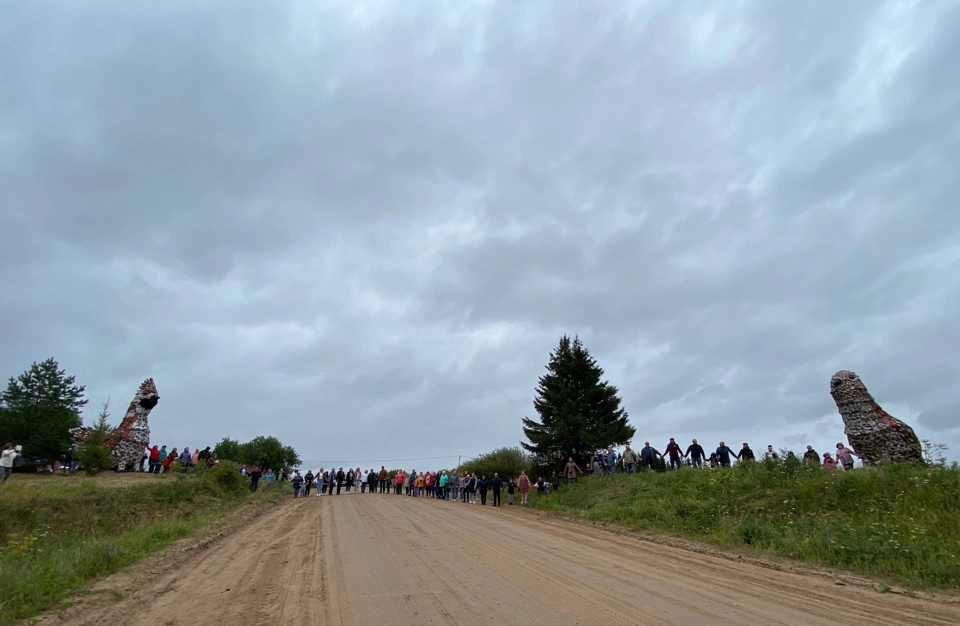 Когда Алена только задумала гигантских птиц, администрация Пинеги пообещала ей оформить землю как полагается (тут я не сильна в законах и терминологии, суть в том, что рябчики должны были остаться именно арт-объектами и именно въездной группой в Пинегу). Прошло несколько лет - и выяснилось, что земля вообще больше 20 лет была в собственности (!) и никак не разрабатывалась ни под какие нужды, а теперь, когда на ней такая красота, собственник сразу объявился, да не один, и пошли суды за этот участок земли, причем суды, в которых Алена вообще никакое участие принять не могла, потому что никакого отношения к земле не имела (несмотря на заверения и обещания администрации, ага).