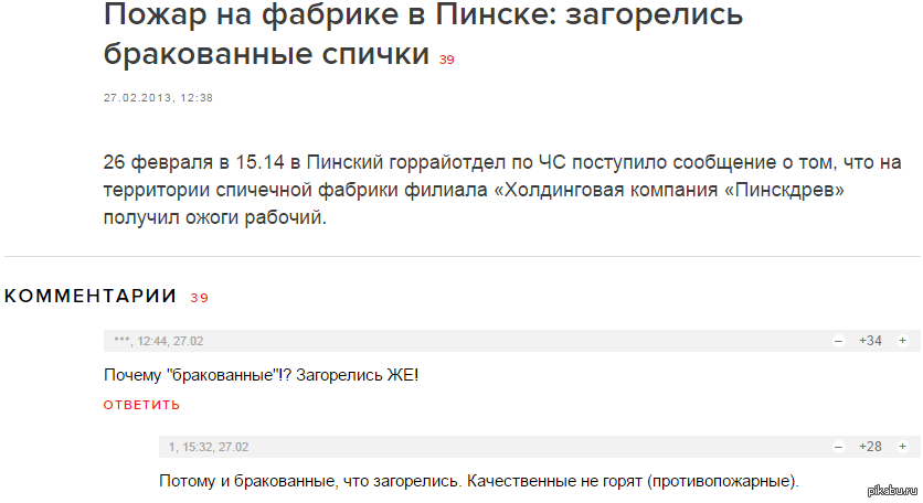 8 razzvezdiay 10 лет назад пинскдрев,всё таки иногда эти спички горят задался вопросом о противопожарных свойствах пинских спичек,ответ так и не нашёл,но понял что проблема с ними не у меня одного Спички Падла Не горят Новости