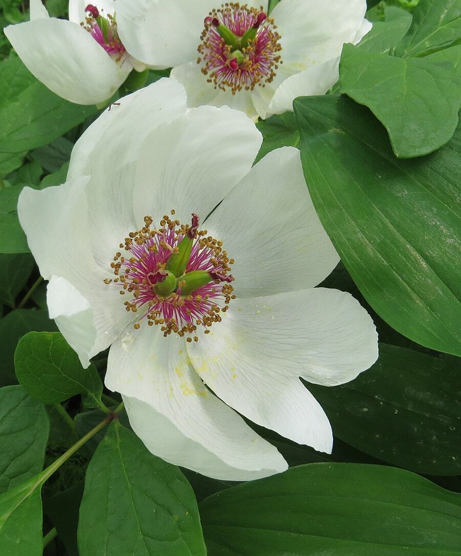 Пион горный (Paeonia oreogeton) - одно из красивейших растений Дальнего Востока. Отличается крупными кремовыми или бело-розовыми цветками.