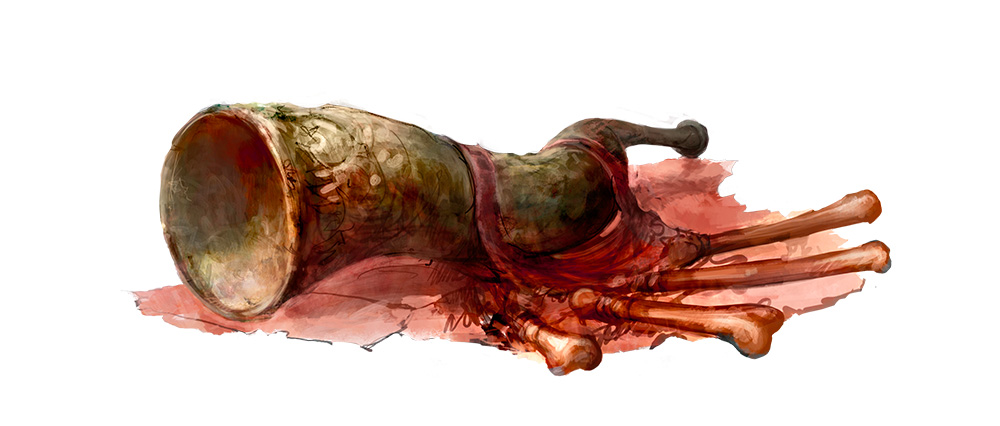 Столы были накрыты. На провисших банкетных столах лежали изуродованные тела. Понадобилось мгновение, чтобы понять — это искорёженные трупы его патруля, а треснувшим кубкам разлита их кровь. На этот раз он не смог сдержать подкатившую к горлу желчь, и она выплеснулась на пол.