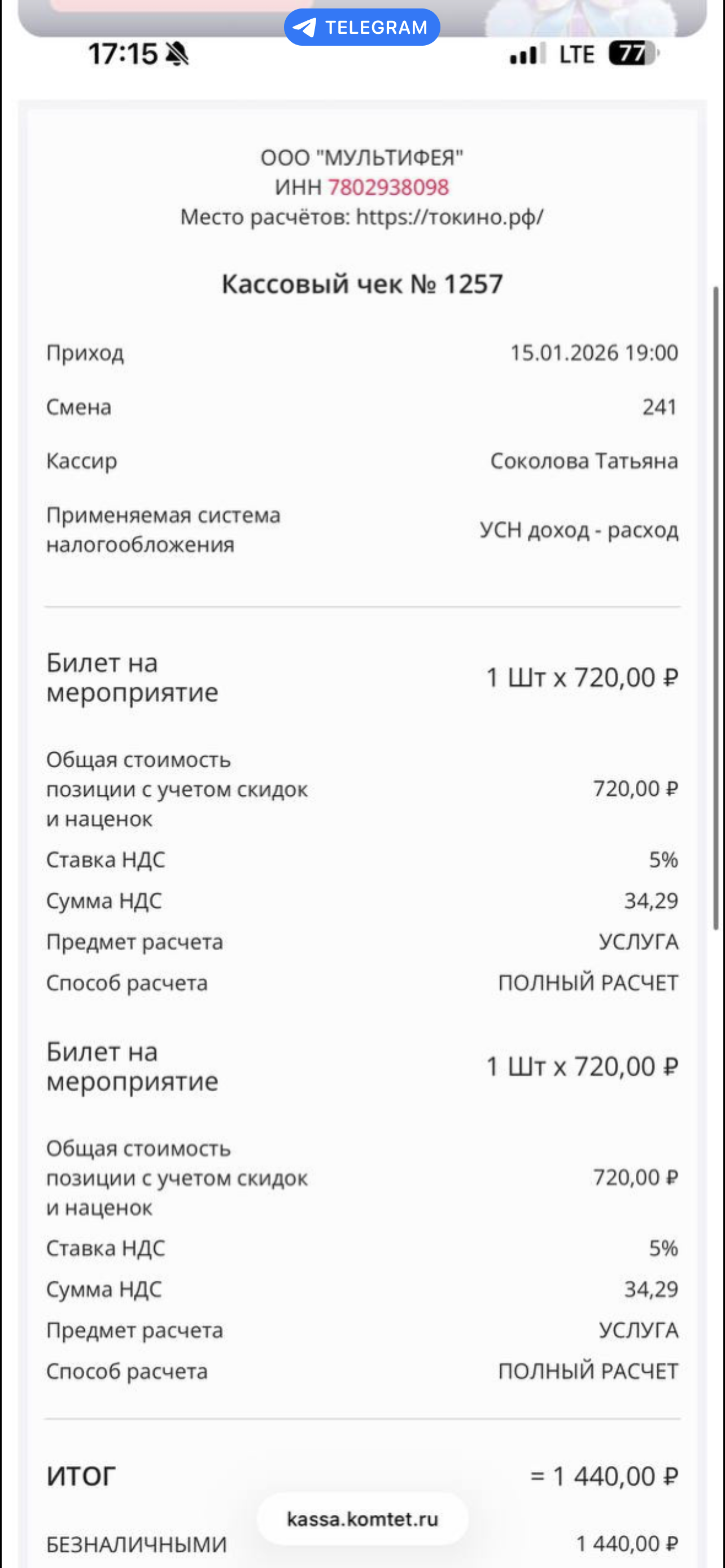 В итоге ушли с сеанса минус 2800 руб. за билеты и еду. У «Токино» есть только Telegram-бот, который отвечает отписками: деньги не возвращают, вопрос не решают. Я погуглил — и оказалось, что это уже массовая история по всей стране.