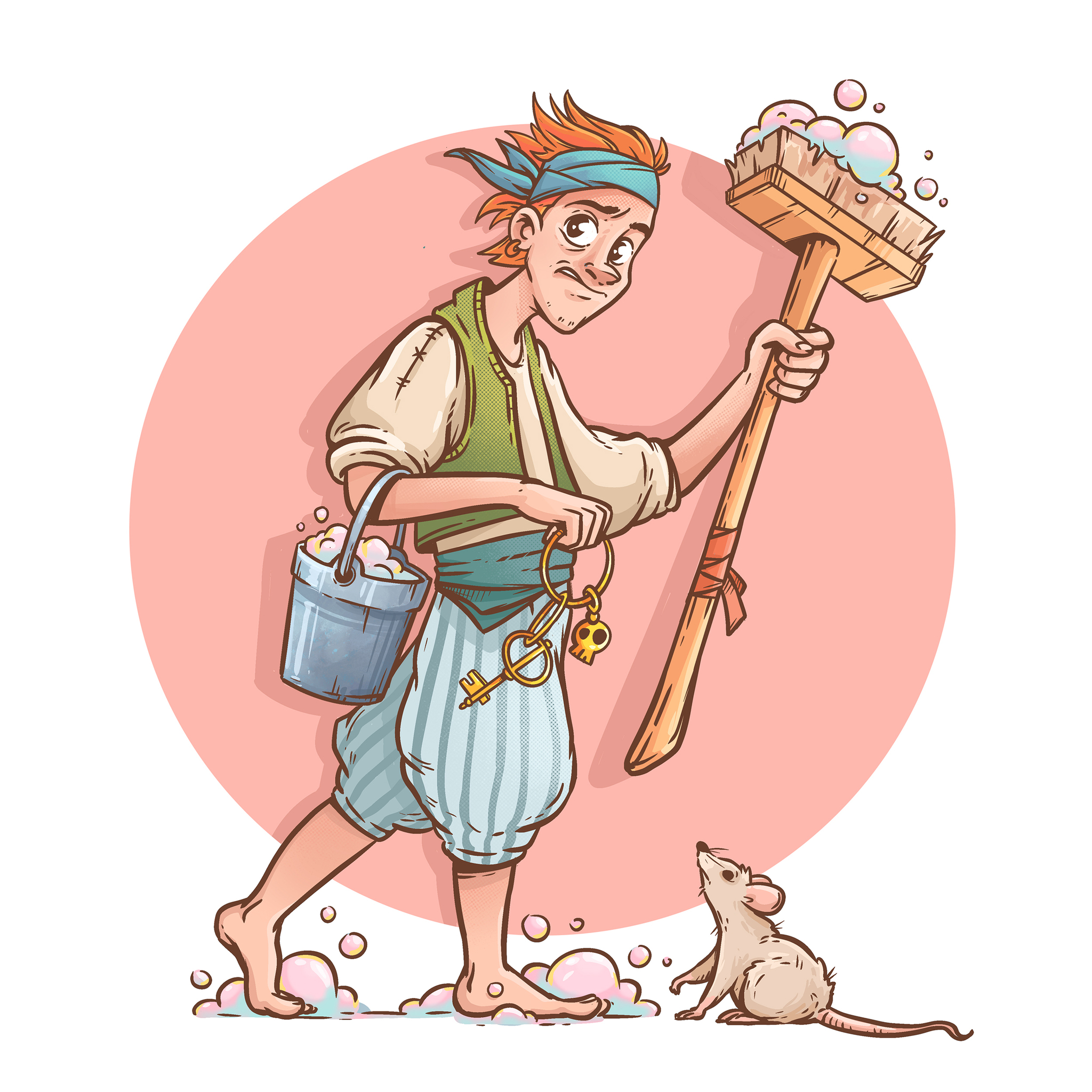 Это матрос Моди и он слегка раздолбай. ему доверили помыть палубу, но вместо средства для полов он взял шампунь капитана... Моди очень сильно влетит за эту оплошность...