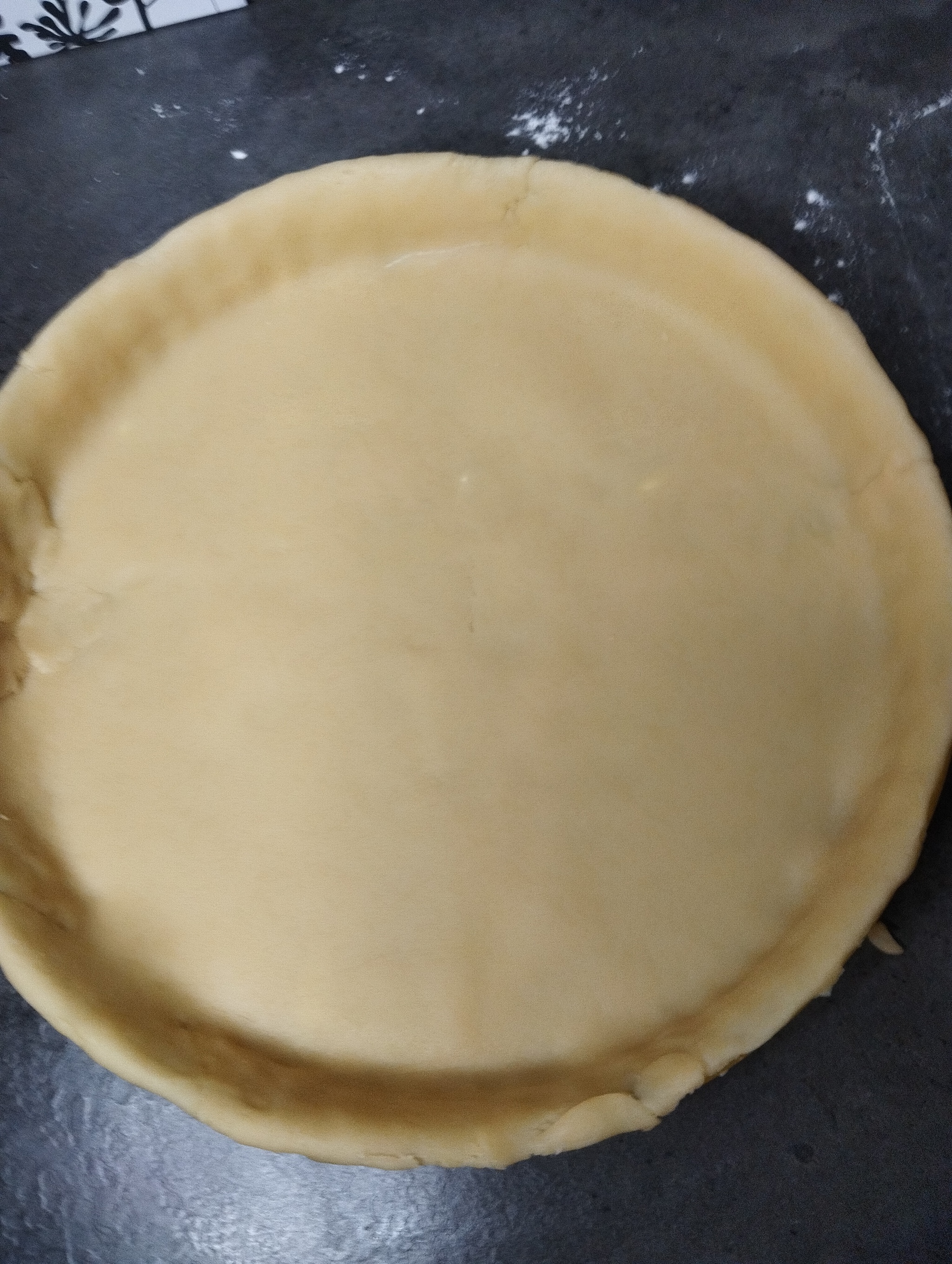 Перемешиваем и перекладываем в тарелку, чтобы начинка у нас немного остыла. Если будет горячая, тесто потечет в процессе сборки. После того, как начинка остыла, начинаем собирать пирог. Раскатываем тесто в тонкий пласт. Смазываем форму сливочным маслом (у меня форма диаметром 26 см) и выкладываем в нее нижний слой теста.