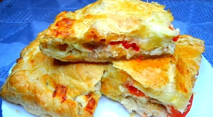 ПИРОГ С КУРИЦЕЙ ИЗ ГОТОВОГО СЛОЕНОГО ТЕСТА К ЧАЮ