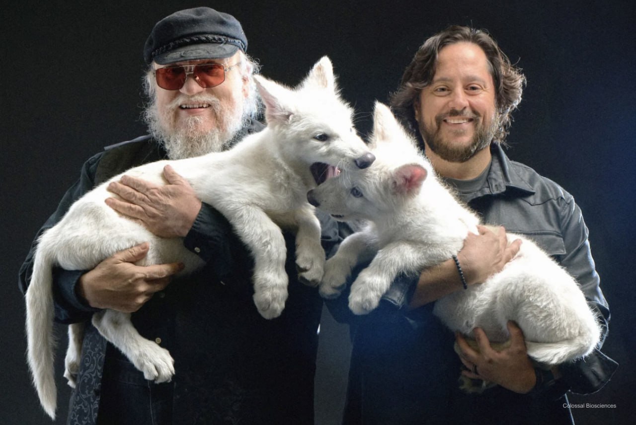 Недавно автор «Песни льда и пламени» встретился с Ромулом и Ремом — волчками, воссозданными компанией Colossal Biosciences. Ромул и Рем — мальчики-близнецы, внешне похожие на ужасных волков. А ещё зимой у малышей родилась сестричка Кхалиси — её так назвали в честь героини из «Игры престолов». А в соцсетях мальчишек уже вовсю сравнивают с лютоволками из книг Мартина и сериала по его произведениям.