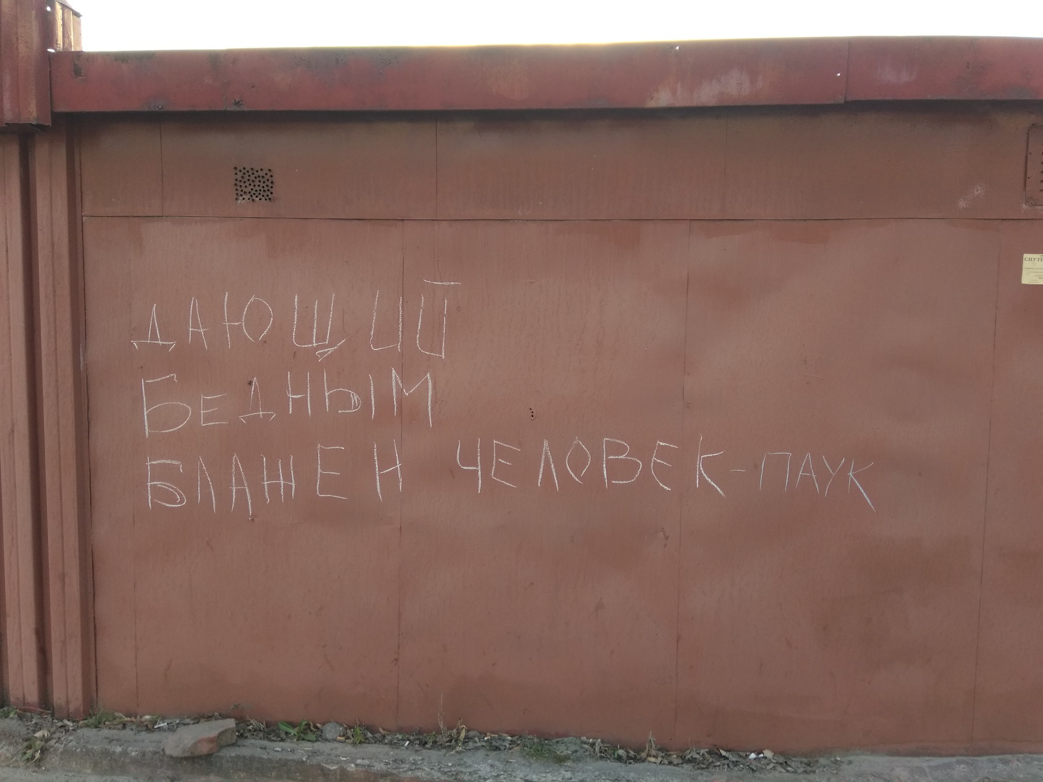 В последнее время часто встречаю всякие надписи на стенах, заборах и прочих поверхностях. Особенно активны в этом всяческие "веруны" типа свидетелей (или потерпевших)) Иеговы и прочие долбоящеры.