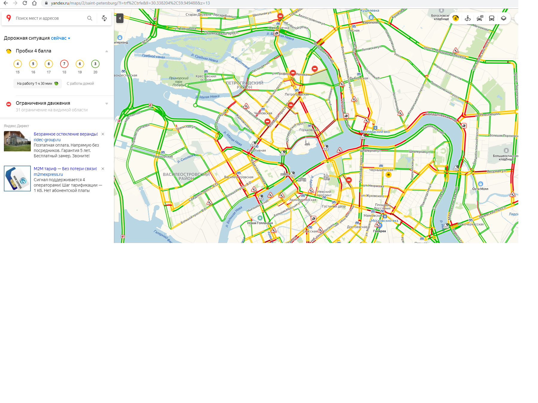 но на экране до точки конечной, пишет программа что ехать полдня