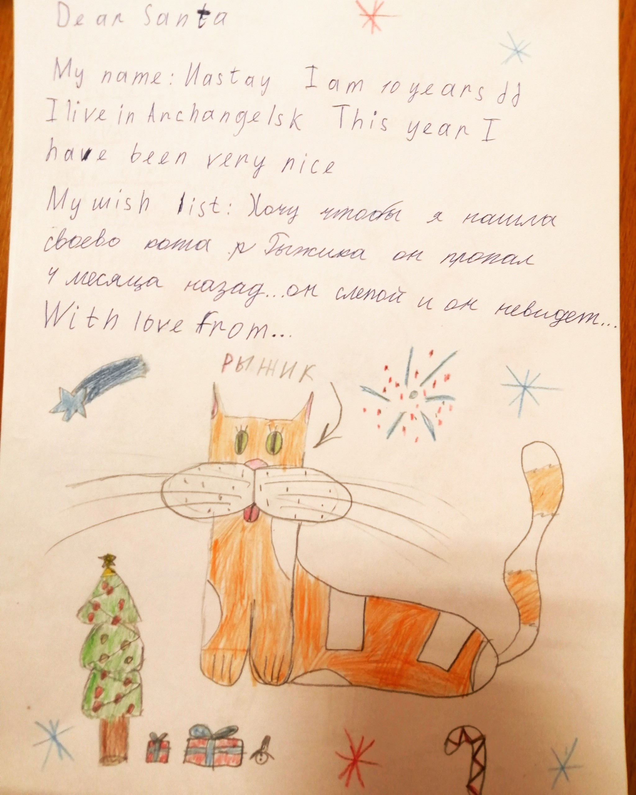 562 tizhuchitel Лига Педагогов Письмо Санте 6 лет назад Работаю учителем иностранного, сегодня с началкой писали письма Санте, среди кучи запросов о приставках и айфонах нашла вот это 😭 [моё] Письмо Школа Дети Санта-Клаус Кот