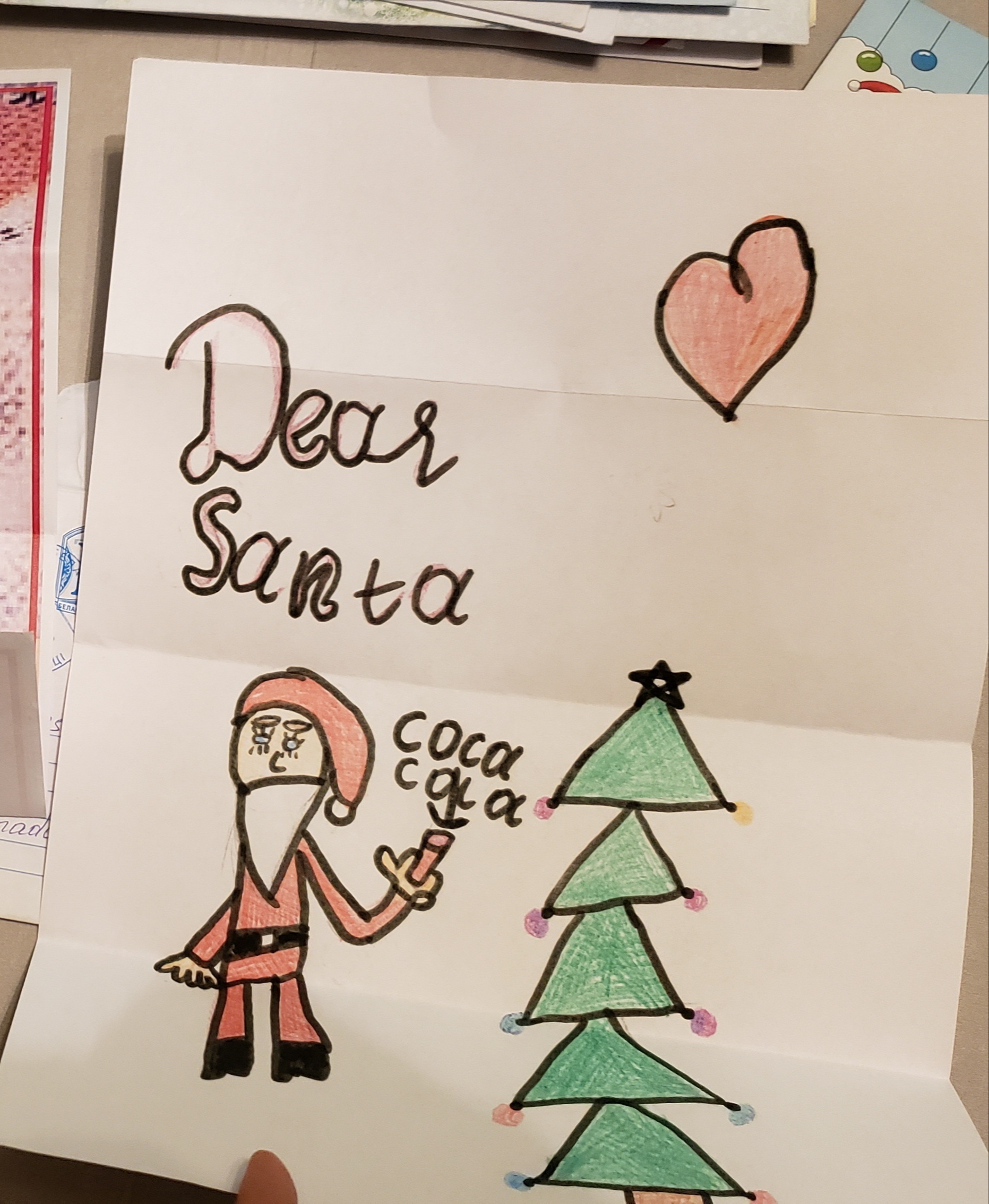 Но не всегда все так мило и "розово". В прошлом году коллега мужа читал письмо, где девочка просила Санту сдедать так, чтобы папа перестал ее трогать... или еще письмо, где мальчик писал, что понимает, что Санта не нашел время для него в прошлом году и поэтому не принес ему подарок, ведь мама и папа всегда ругались. А в этом году они ругаются меньше и не будет ли у тебя время для меня сейчас..?