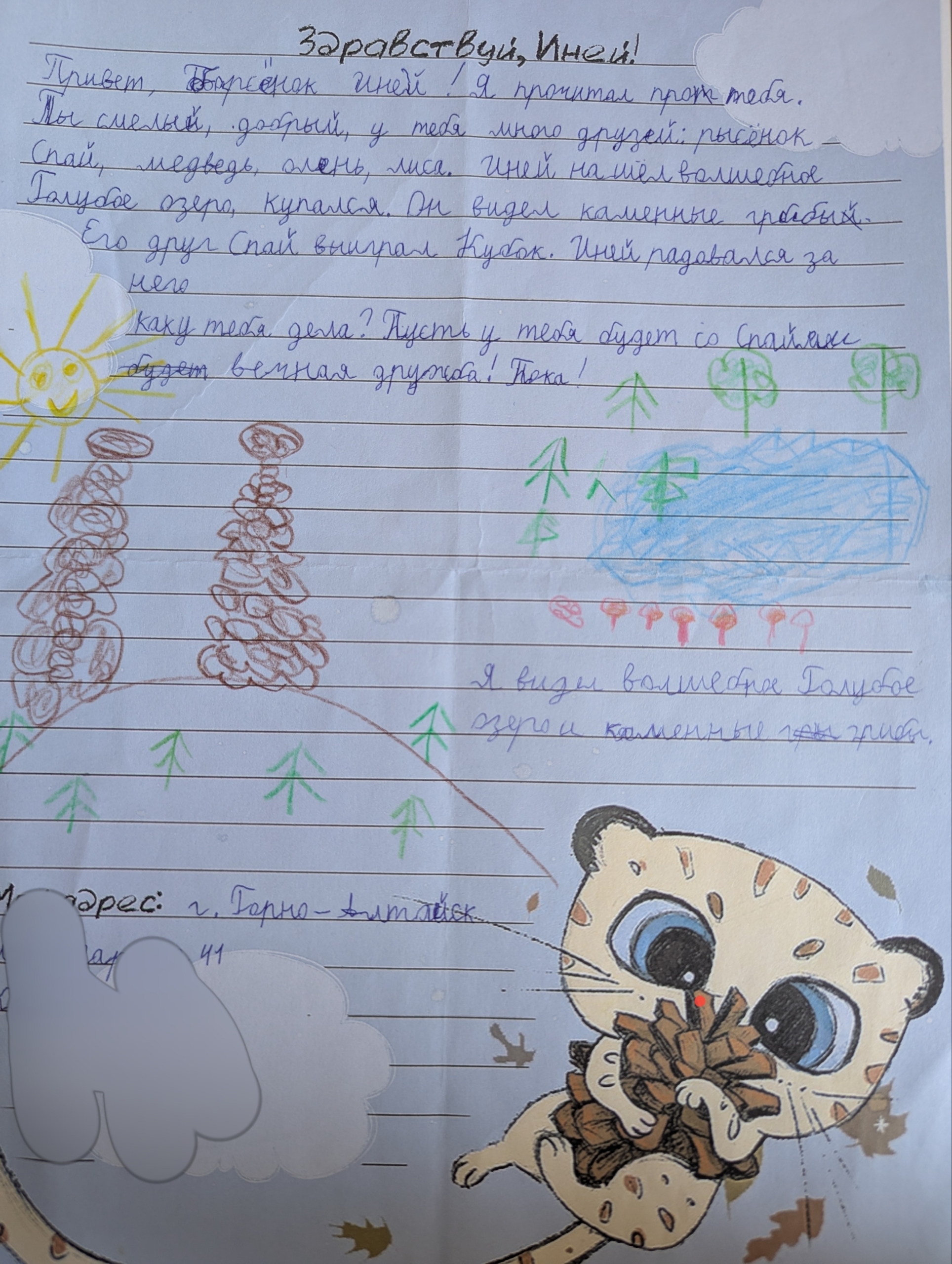 Если ваш ребенок прочитал «Сказки о снежном барсе» или «Сказки о снежном барсе. Новые истории» он тоже может написать письмо герою книги. Иней обязательно ответит!