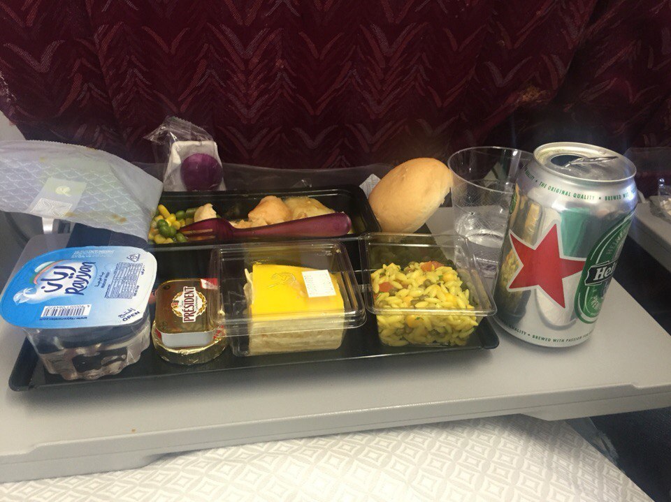 При подлете к Рио кормили еще раз, нечто вроде завтрака: круассан, булочка, джем, йогурт, холодная закуска (ветчина, сыр, маслина)