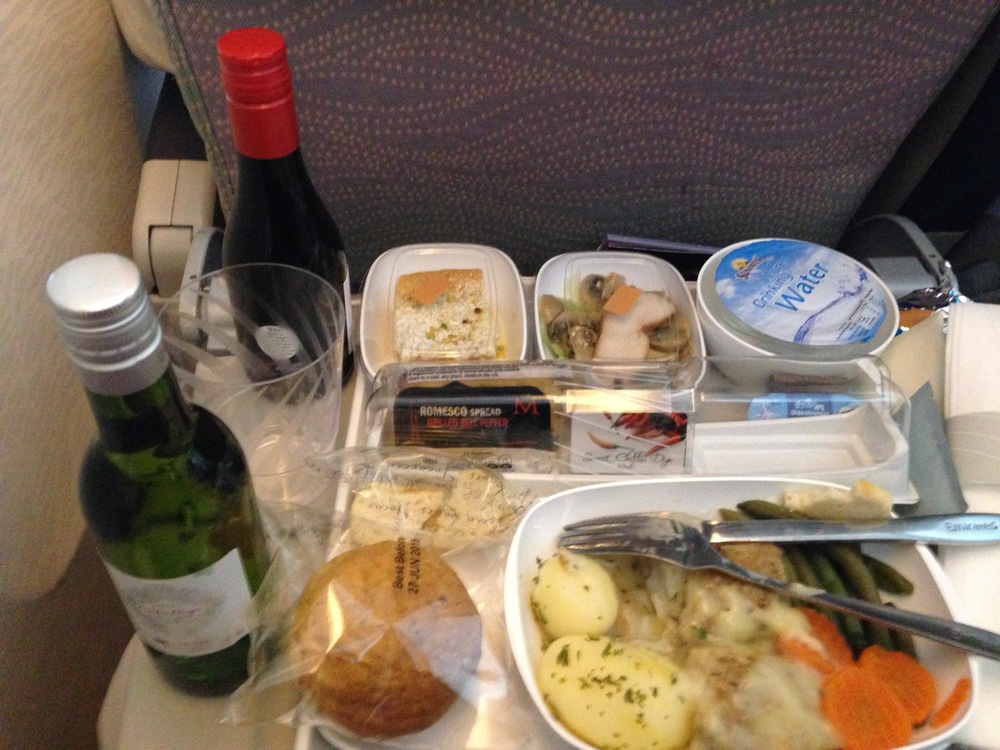 Впервые очень неприятный осадок от питания на борту. Не ожидал, что кухня Alitalia мне не понравится совершенно. Абсолютно никакое второе блюдо, стандартная булочка с маслом, сосательная конфетка(!) для хомяка, и холодная закуска с ветчиной очень странного вкуса и овощами.