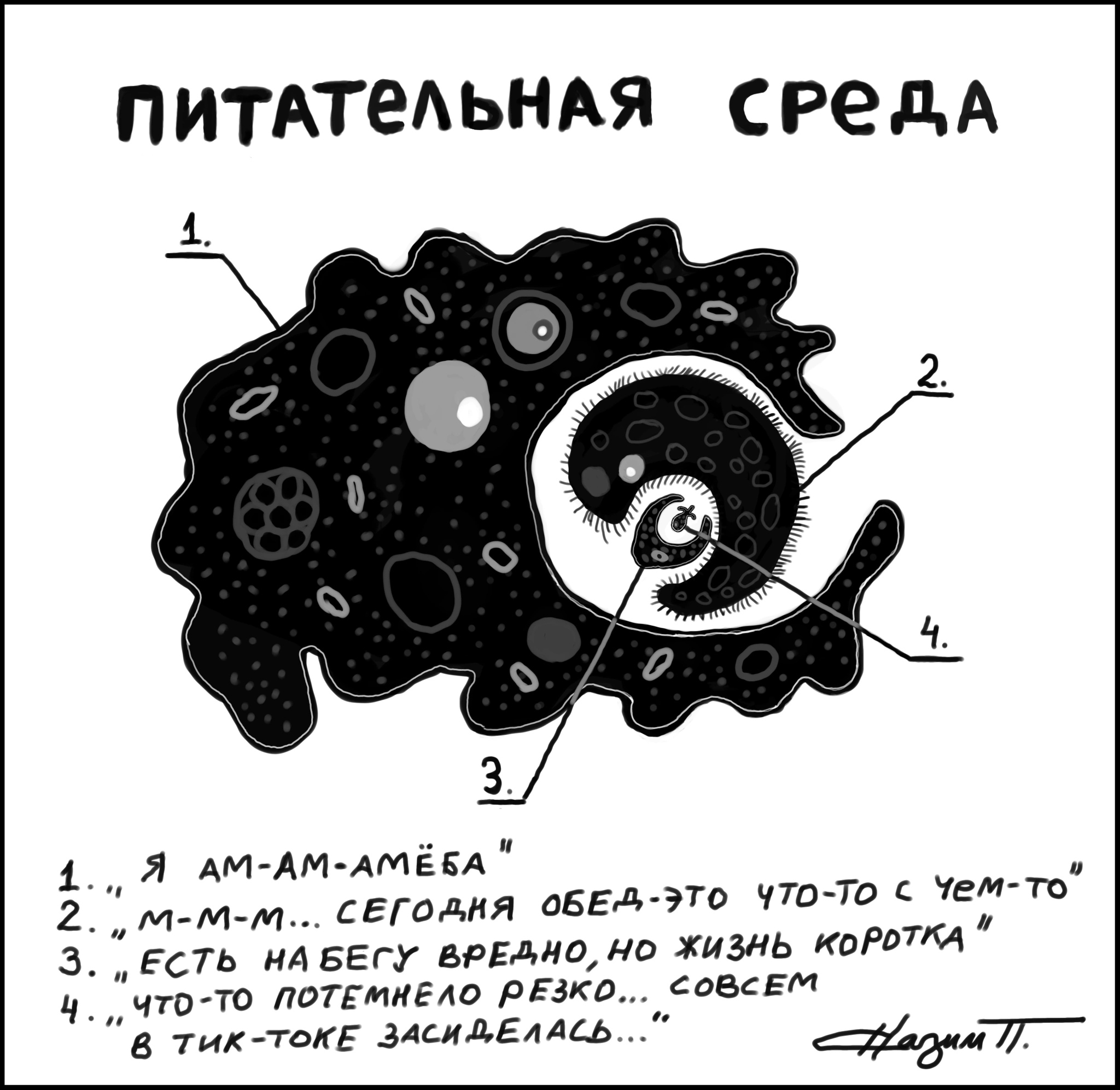 178 pavelnazim Павел Назим. Рисунки на вечные темы Питательная среда 10 месяцев назад Мысли простейших [моё] Рисунок Графика Павел Назим Художник Природа Амеба 7 1 1 Ещё 0