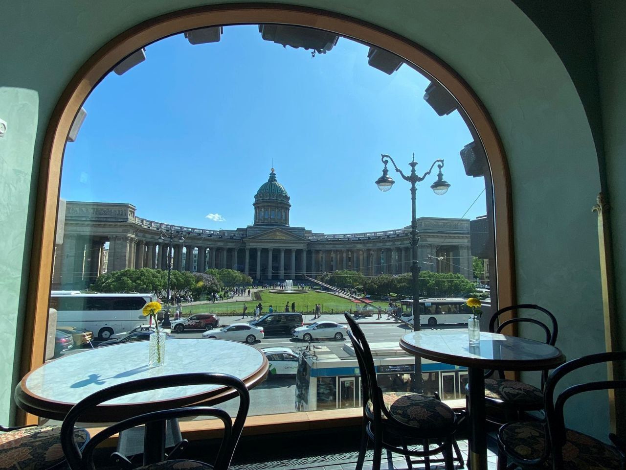 Завтрак в кафе Rene - лучший вид на Казанский собор. Бонусом - побродить по очень атмосферному Дому книги и поулыбаться забавным сувенирам на минус первом этаже.