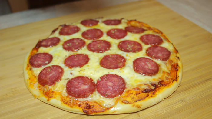 В данном рецепте я бы хотел показать, как приготовить вкусную пиццу пепперони в домашних условиях. На самом деле задача достаточно простая. Самое сложное – это найти колбасу пепперони, с остальными ингредиентами проблем быть не должно. Попробуйте приготовить эту вкусную пиццу у себя дома. Это намного легче, чем кажется!