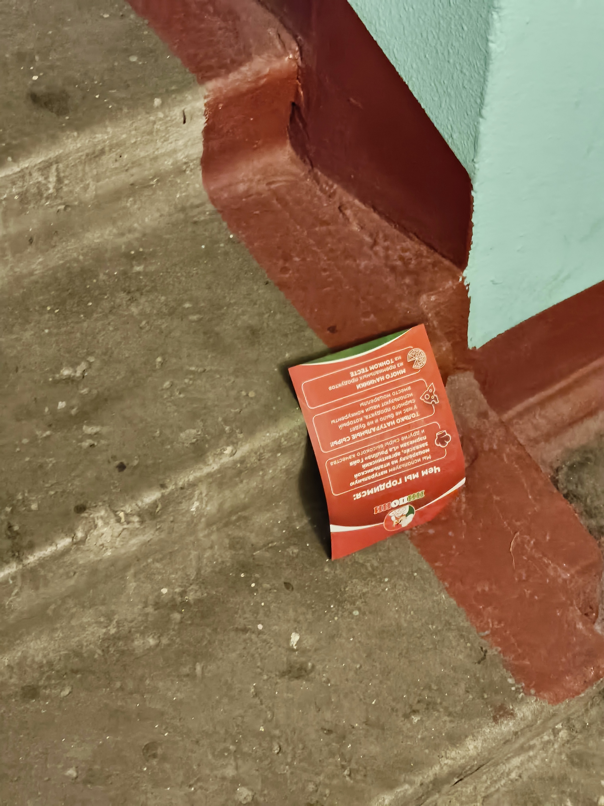 Прихожу с работы и вижу весь подъезд загажен рекламными листовками "пицца пипони" всюду расклеены их листовки, валяются на лестницах, приклеены к дверям по одной-две, даже на строительном мусоре приклеили! Вот как с этим бороться? Зачем жителям эта макулатура по всему подъезду? Перед дверью в подъезд есть рекламный стенд, приклейте туда одну, кому надо увидит. Нет ! Нужно засрать весь подъезд этими листовками! Вряд ли у кого-то из жителей появится желание сделать там заказ.
