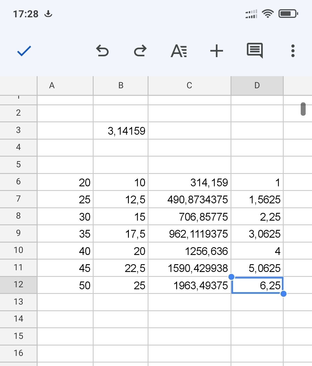В нашей пиццерии продавались пиццы 35см и 45см, я на смартфоне посчитал площади - получилось 961см*кв и 1589см*кв соответственно, стоимость - 860 и 1100 рублей, тоже соответственно. Разница в площади 1 к 1.65, т.е. на 65% больше, а разница в цене 1 к 1.28, т.е. всего на 28% дороже.