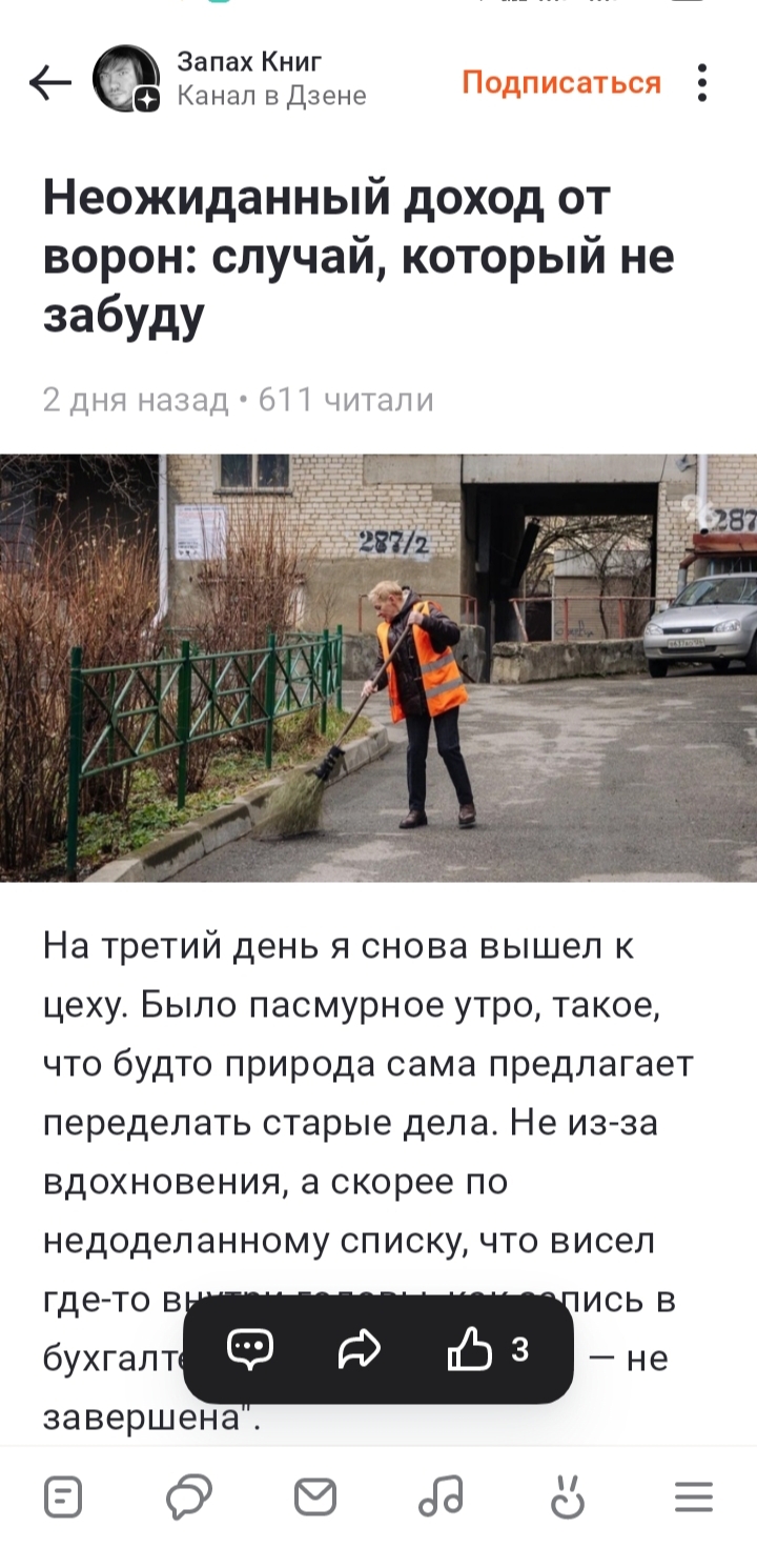 Случайно попалась история написанная два дня назад...Моя история про чаевые от ворон) Только более литературным слогом История со мной лично произошла.Но интересно было прочитать ее более подправленую.Незнаю даже как реагировать Дорогой Запах книг у вас хороший слог