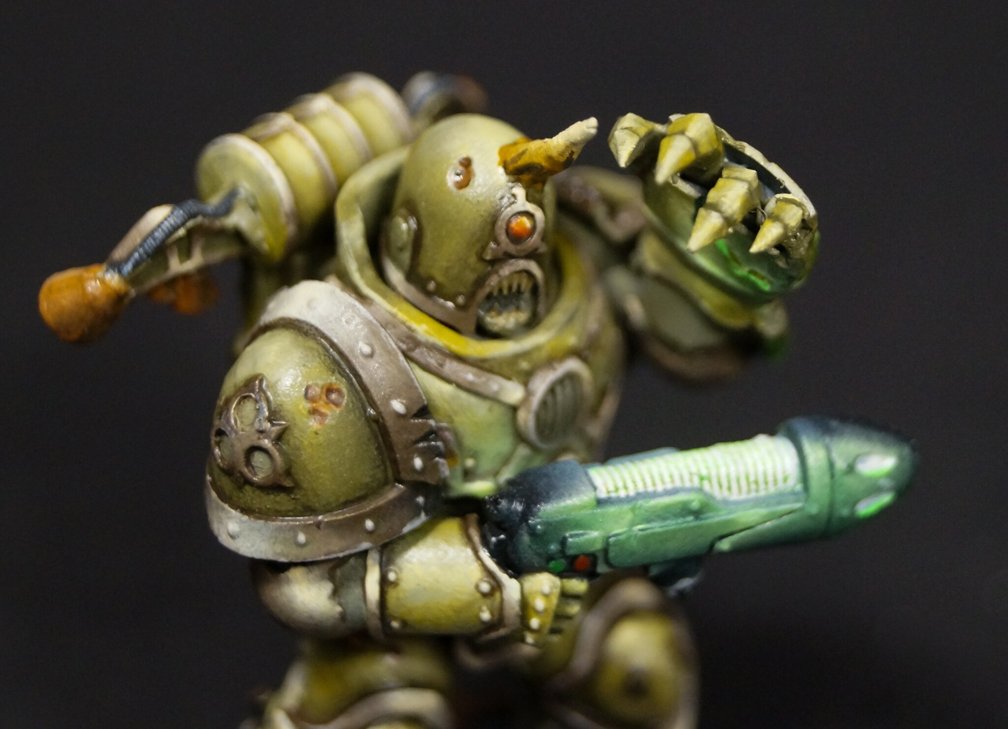 Чемпион чумных маринов, для моей медленно, но верно собирающейся банды Гвардии. 3д печать, роспись акрилами arm.pnt, Звезда, Джим. Масляные краски различных производителей, смывка Tamiya.