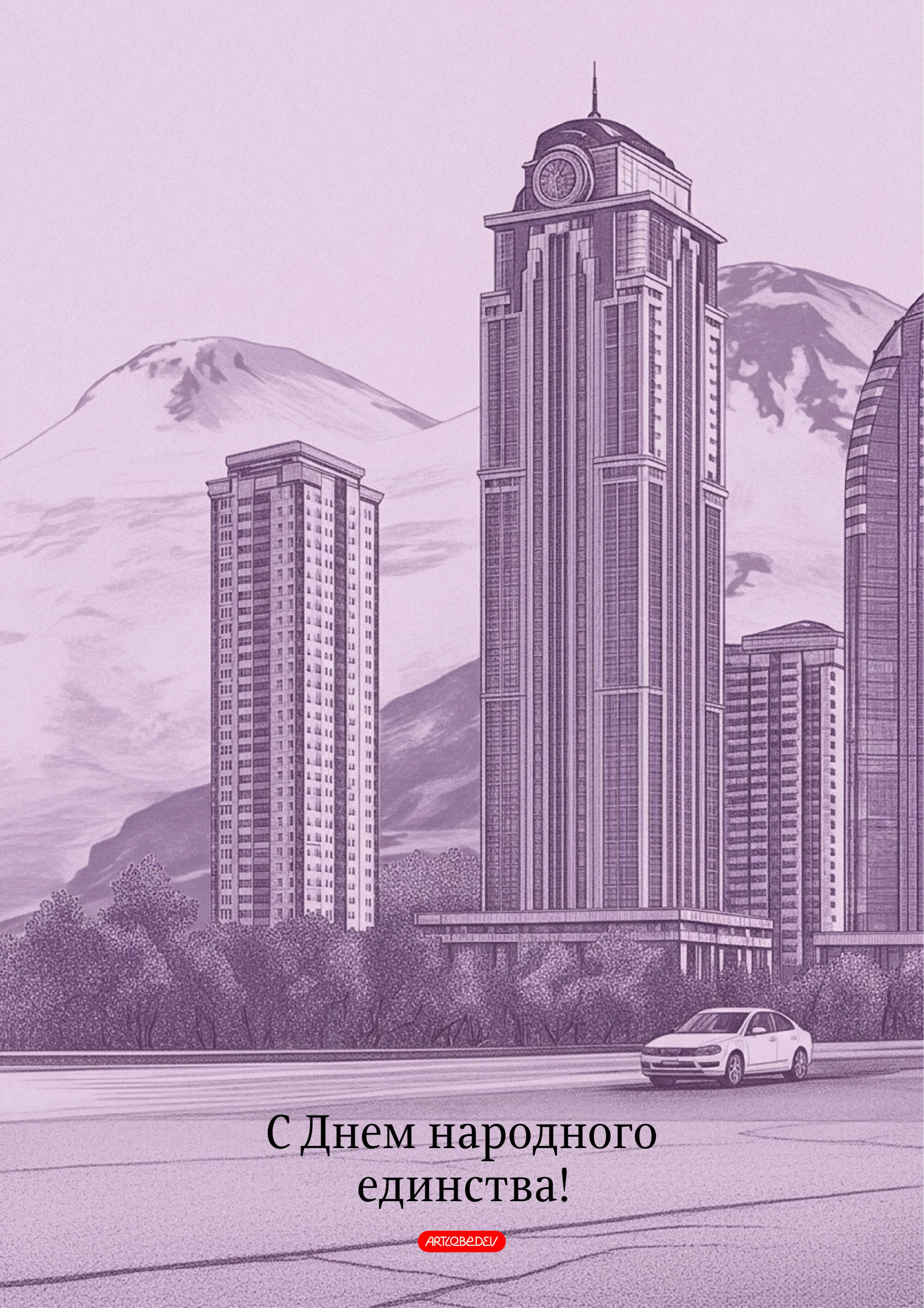 Нетрудно догадаться, что на плакате изображен Грозный-Сити. Еще и в стилистике банкноты номиналом 500 рублей, голосование за символы которой недавно было отменено из-за "большого количества попыток техническими средствами увеличить количество голосов за некоторые объекты." Все мы прекрасно понимаем, что это за объекты.
