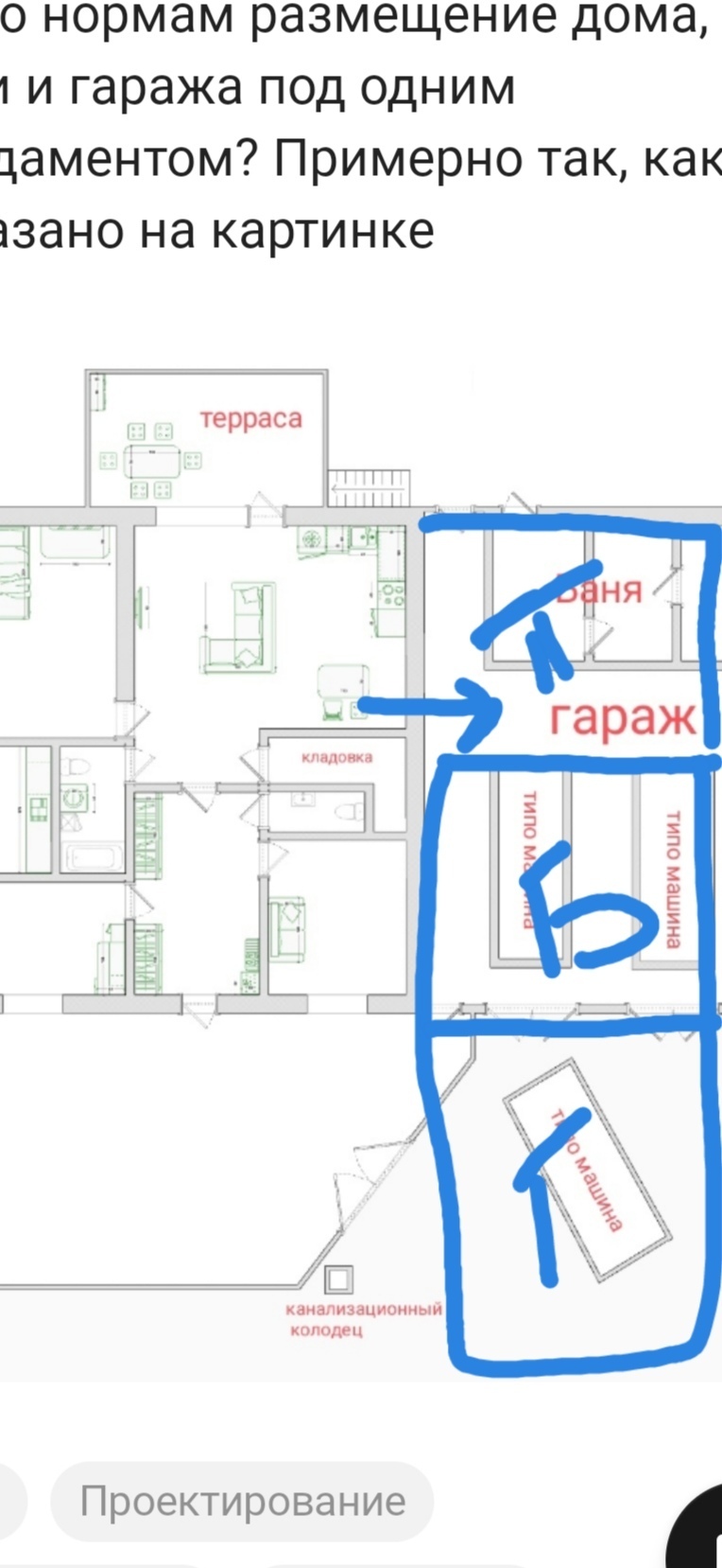 Котельную планирую в гараже сделать возле стены смежной с баней а про кладовую думаю что их местами поменяю со вторым санузлом чтобы два рядом были и меньше коммуникаций тянуть