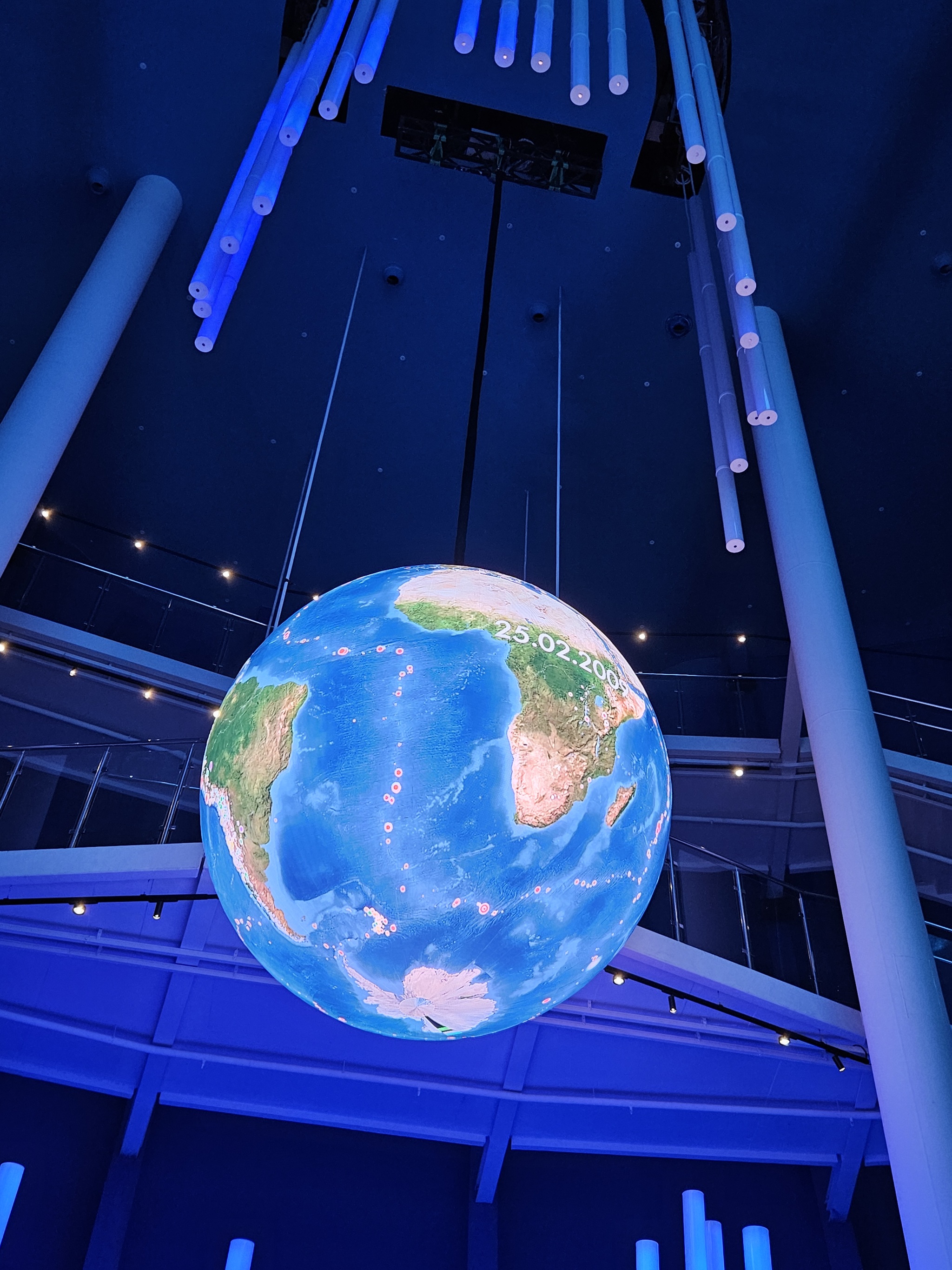 Место это, как вы наверное догадались из заголовка, самый долгожданный и новый корпус Музея Мирового Океана - Планета океан, расположенный в здании в форме шара, изображающего планету Земля.
