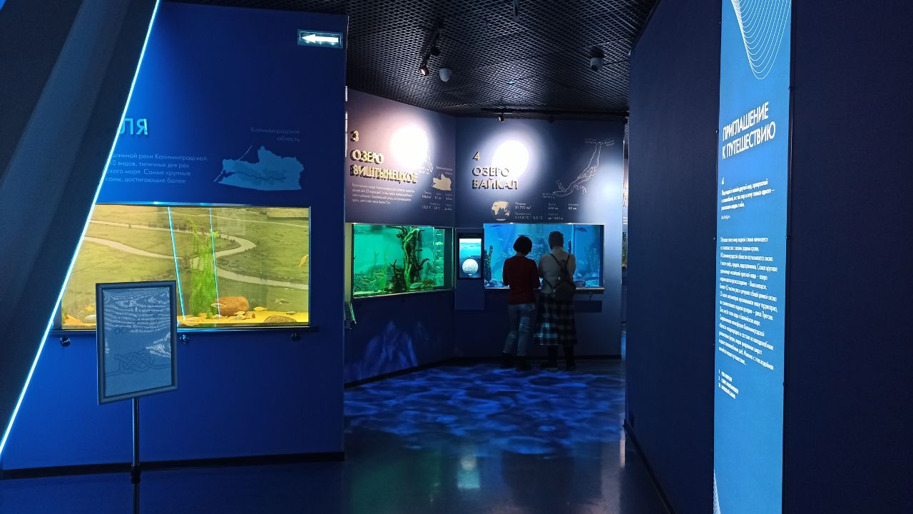 Как я понимаю, пока доступны далеко не все экспозиции, но уже виден масштаб и размах. Были доступны для посещения экспозиции: «Лаборатория Балтики», «Большой океан» и аквариумы. В лаборатории можно посмотреть в довольно мощные микроскопы, а также узнать, чем богат янтарный край, в аквариумах собраны морские обитатели со всего мира, ну а в довершение нас ожидал огромный зал со столь же огромным экраном. Полагаю, в будущем, будет ещё много всего интересного. В том, числе, на сколько я знаю - планетарий. В общем, ждем, полного запуска!
