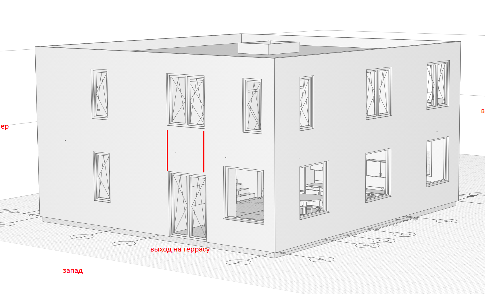 Несколько видов фасадов. Для представления расположения окон, не более.