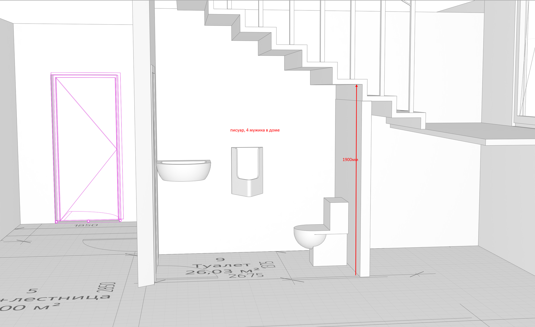 Судя по рекомендациям, лестница должна быть комфортная. Специально ширину выбрал 1350мм. Во-первых санузел с одной стороны. Во-вторых, с другой стороны под лестницей планирую установить морозильную камеру (в кладовке)