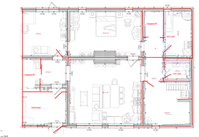 Двери,двери,двери,двери.....проход в прочие помещения через спальню. Да тут все помещения проходные! Нафига?!уединиться то где?на веранде? Или в сортире в дальнем углу?не рабочий вариант.